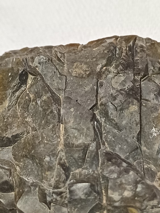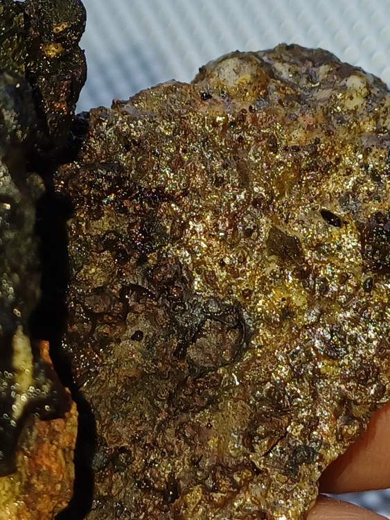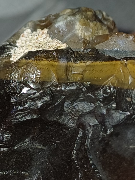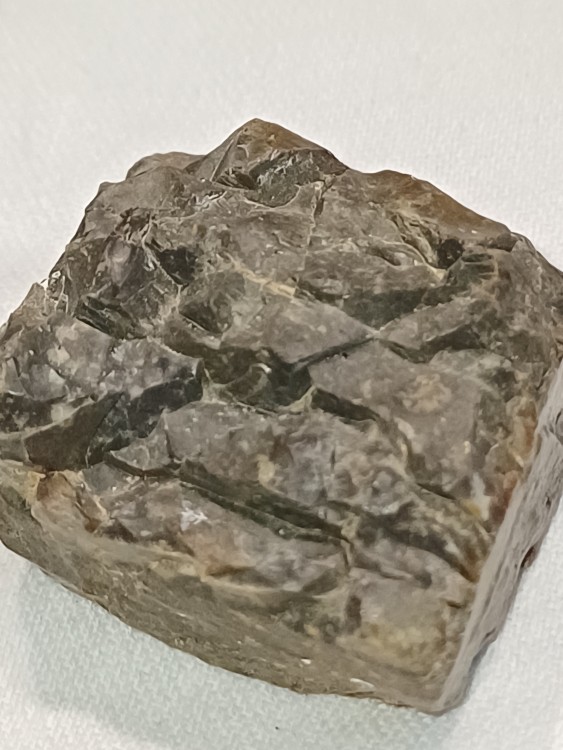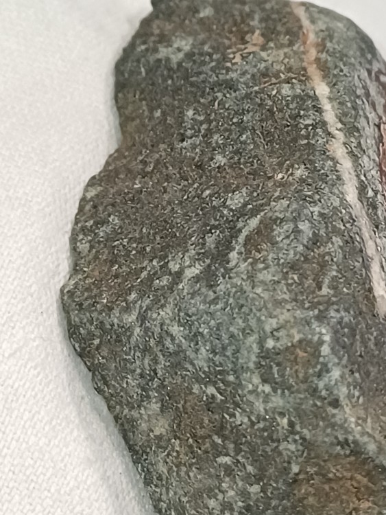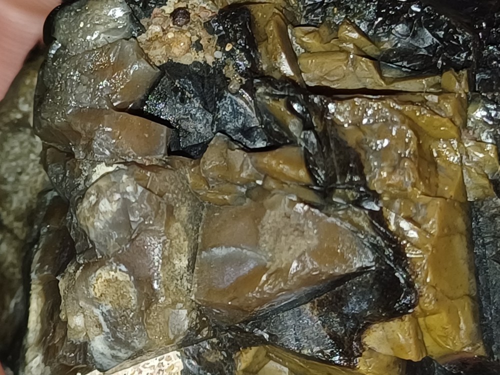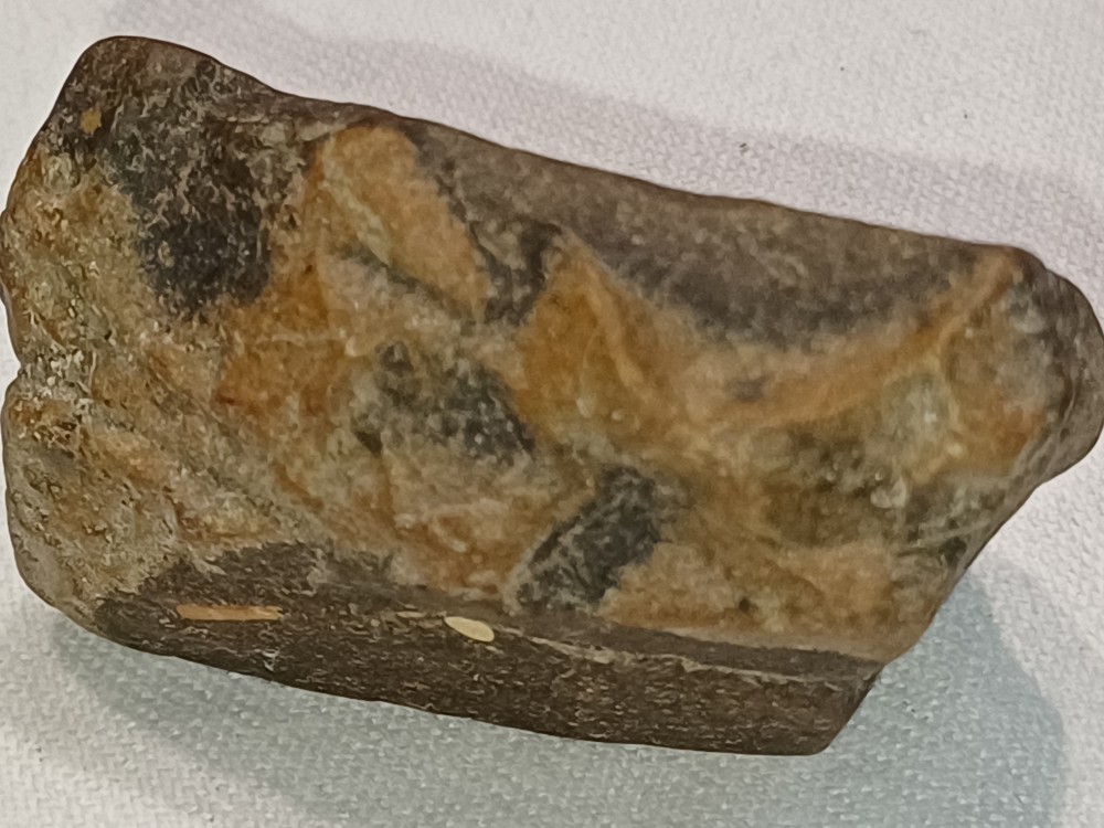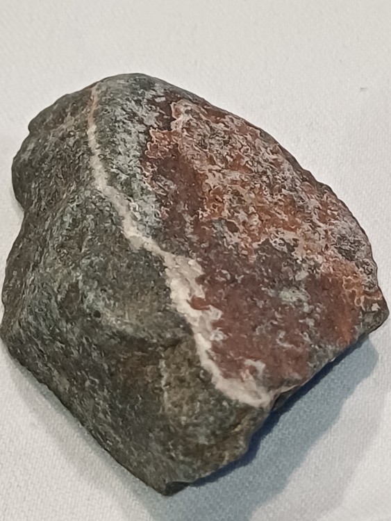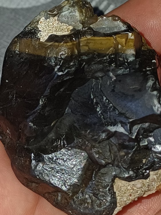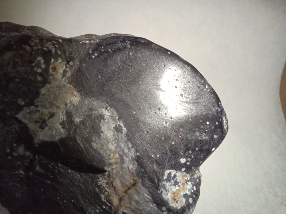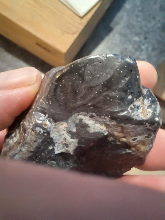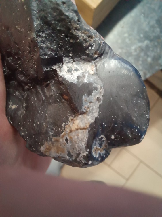 Bonsoir, je souhaiterais votre aide pour cette identification 218.76 gr , densité de 3.5 ,à un endroit j'ai poncer avec un disque diamant et légèrement poncer avec du papier abrasif de 600 , je vous joint dès photos merci d avance, j'ai trouvé en Moselle
