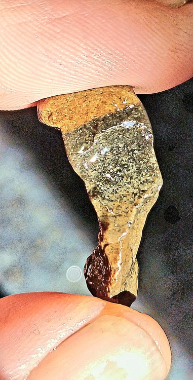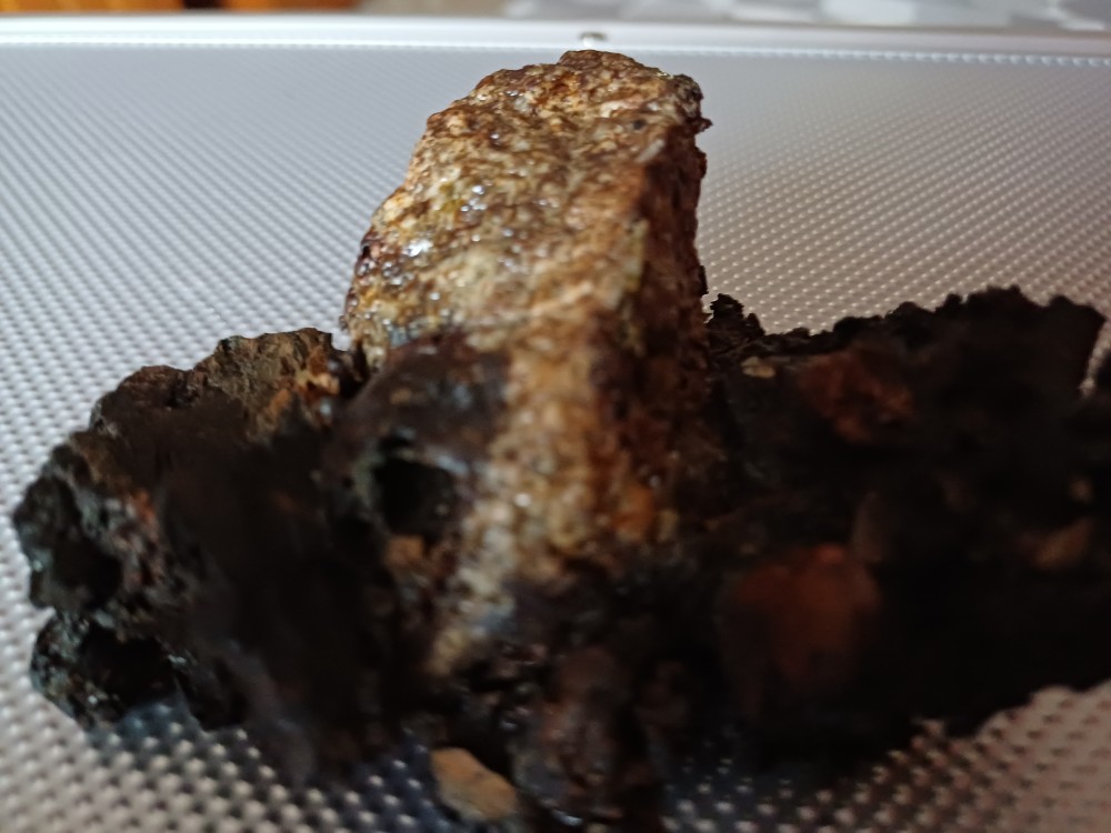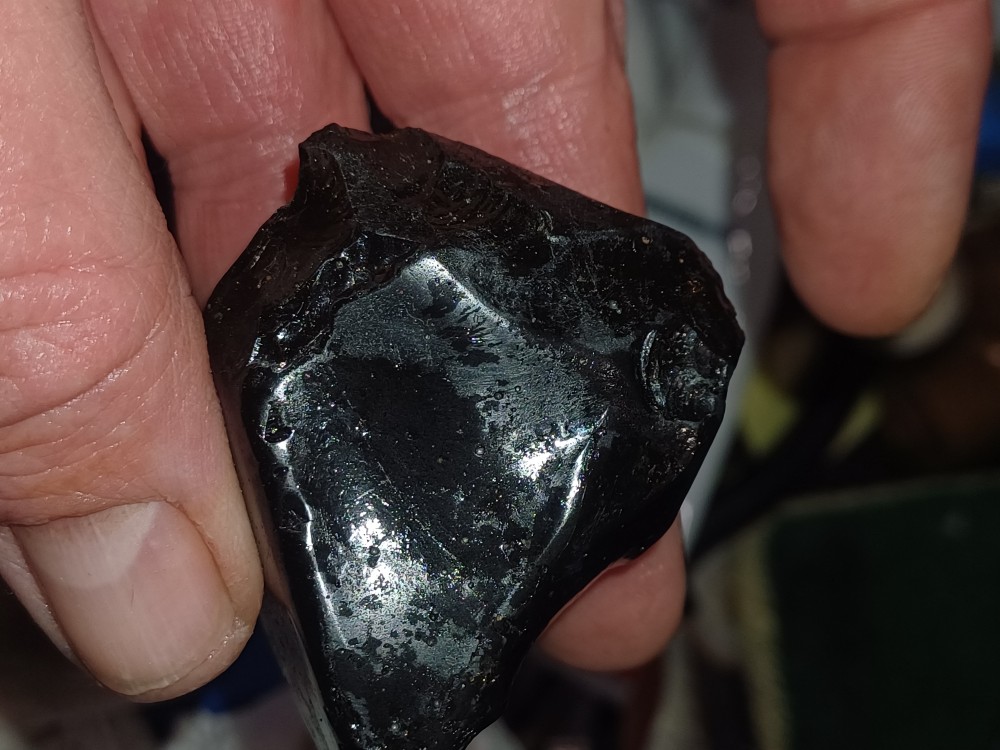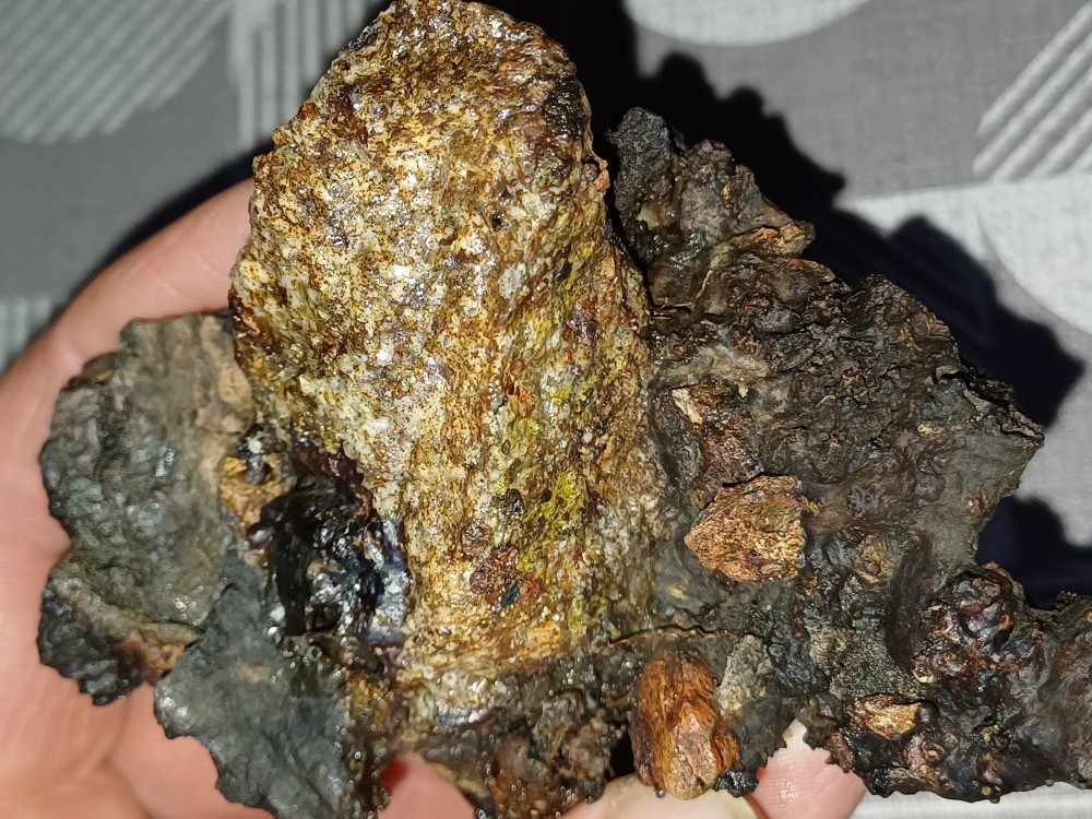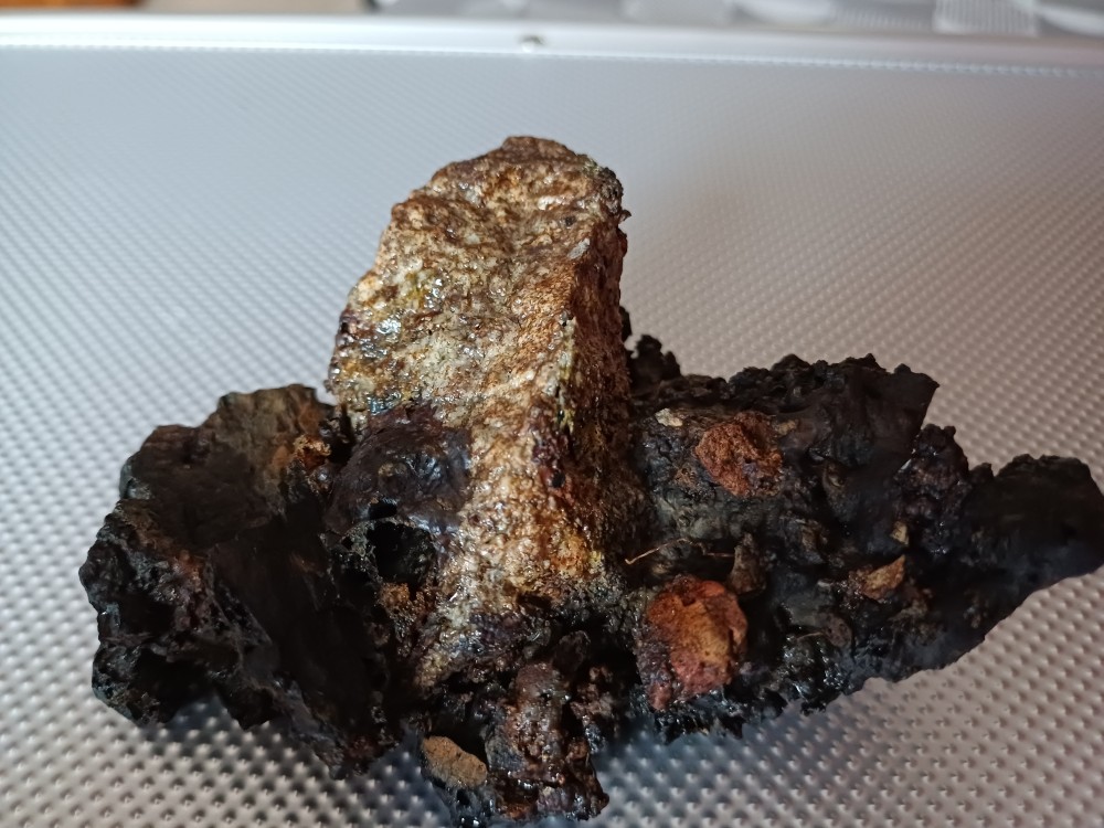 Bonsoir, je vous sollicite pour m aider à identifier ma dernière trouvaille de Moselle, 72,68 gr , avec une densité de 3 opaque et chromé quand on éclair ,merci d avance