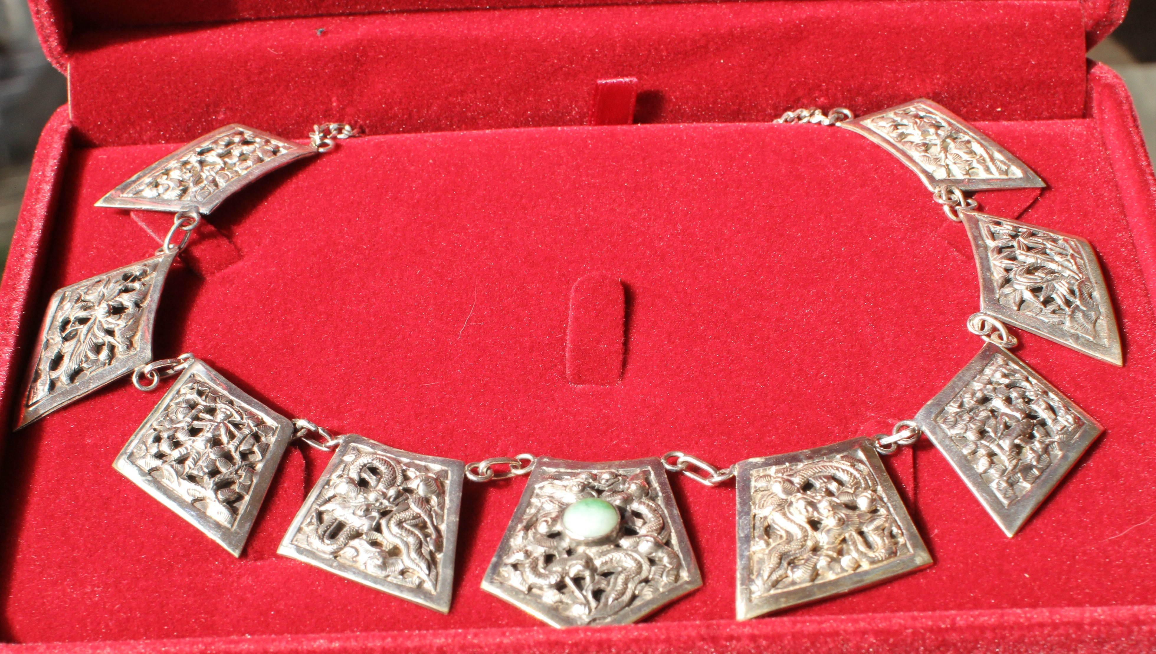 Pour infos, ces perles sont celles d'un collier qui doit dater des années 50. Ramené directement de Chine. Je l'ai acheté à la personne qui la reçu en cadeau et a décidé de le vendre. Il m'arrive de me refaire des colliers avec d'anciennes perles et je trouvais celles-ci intéressantes, y compris par le fait que c'est un bijou ancien qui vient de l'autre bout du monde.