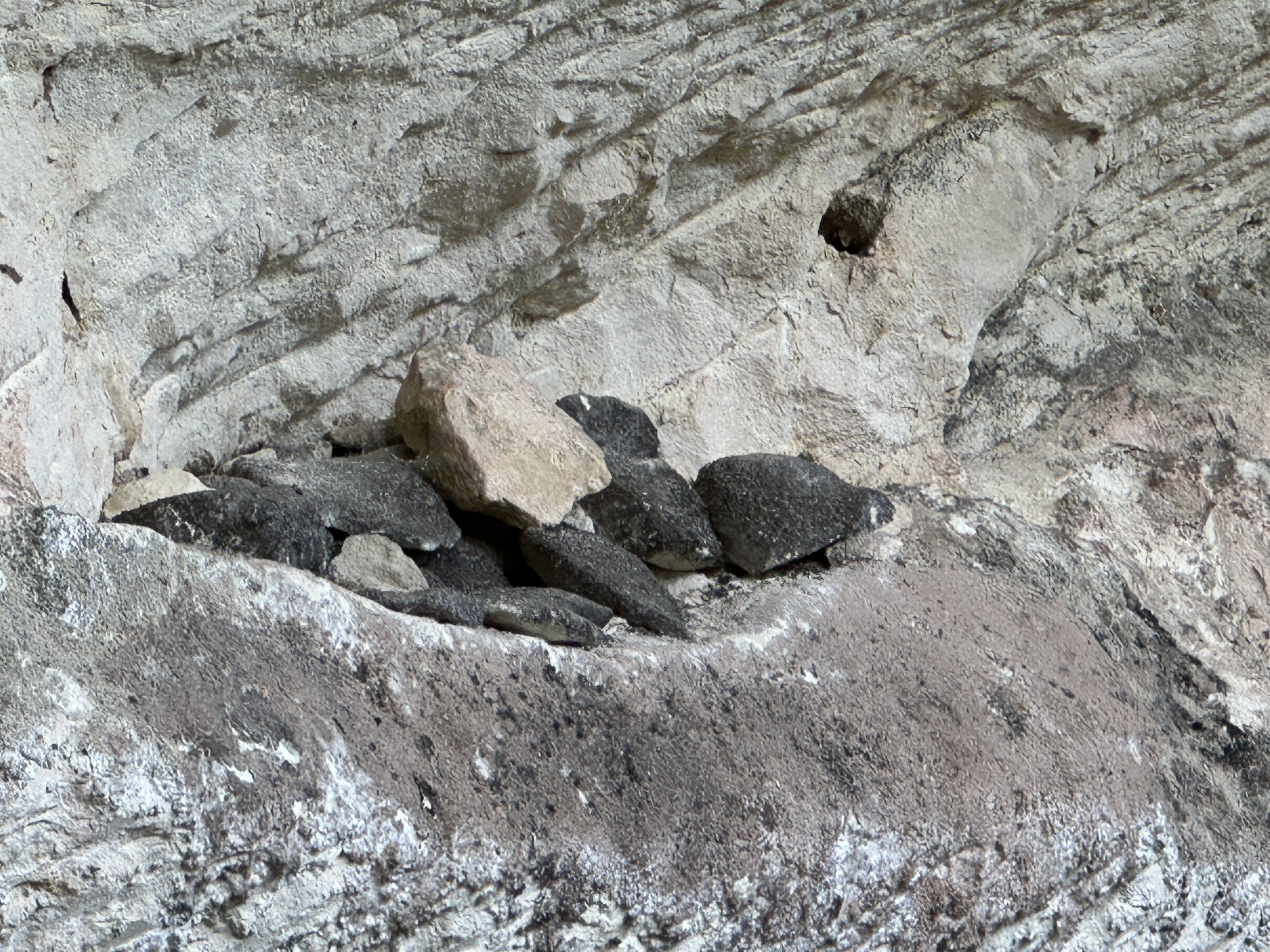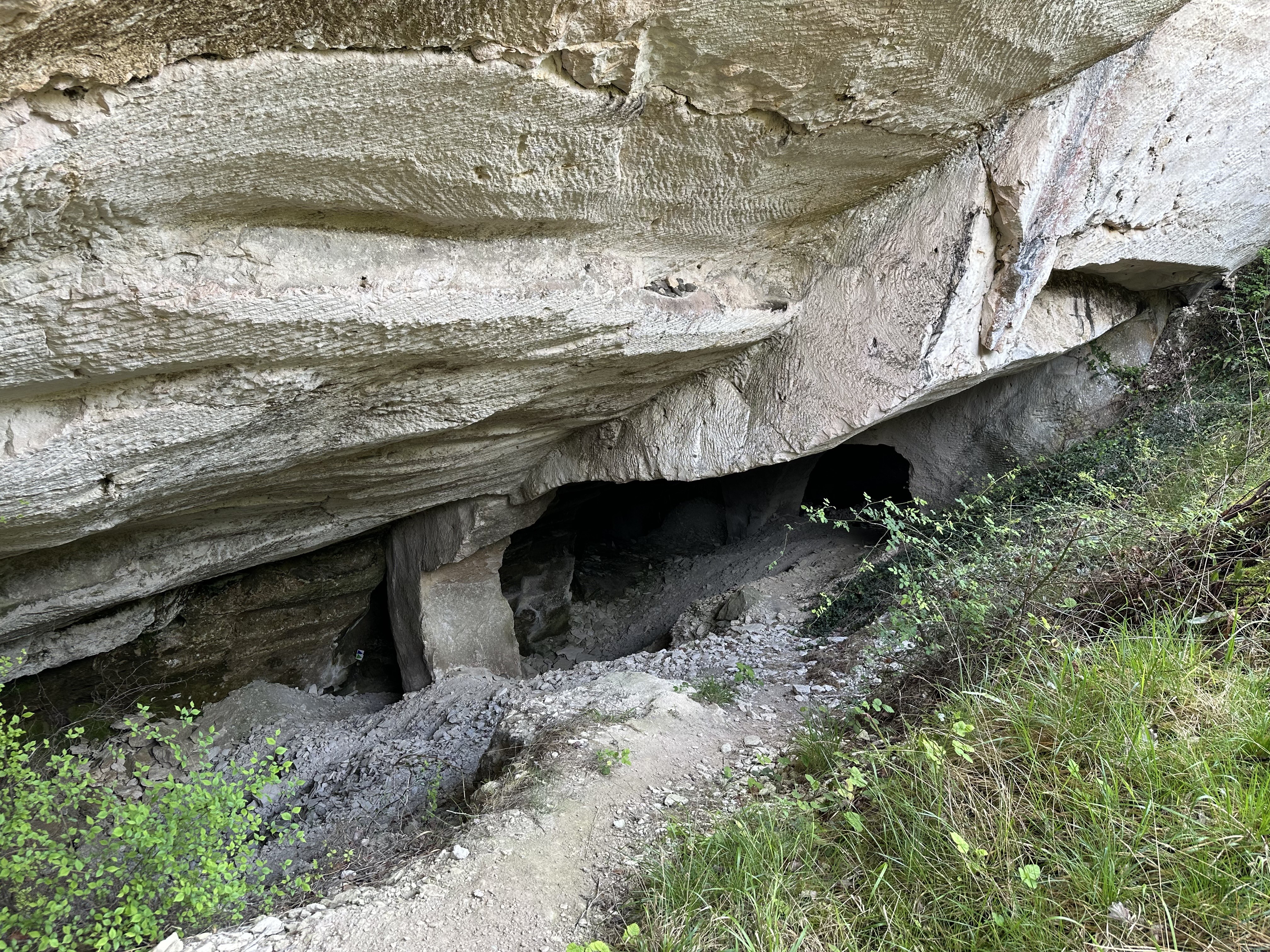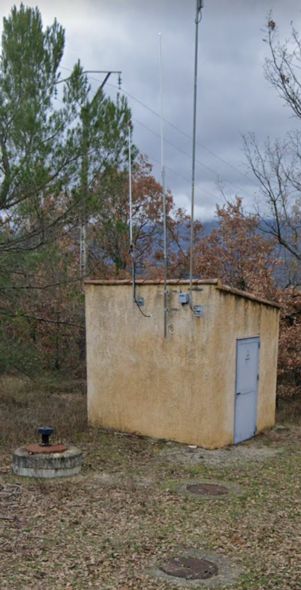 Dans le BSS apparaît ce point sans aucune indication de nature. En bord de route après 15m de progression dans les broussailles on trouve une paroi rocheuse avec blocs éboulés. Sur la droite une faille comblée avec un trou permettant l’écoulement d’eau. Ça vous semble naturel ? Pour quelle raison cet endroit a t il pu être référencé au BSS ?