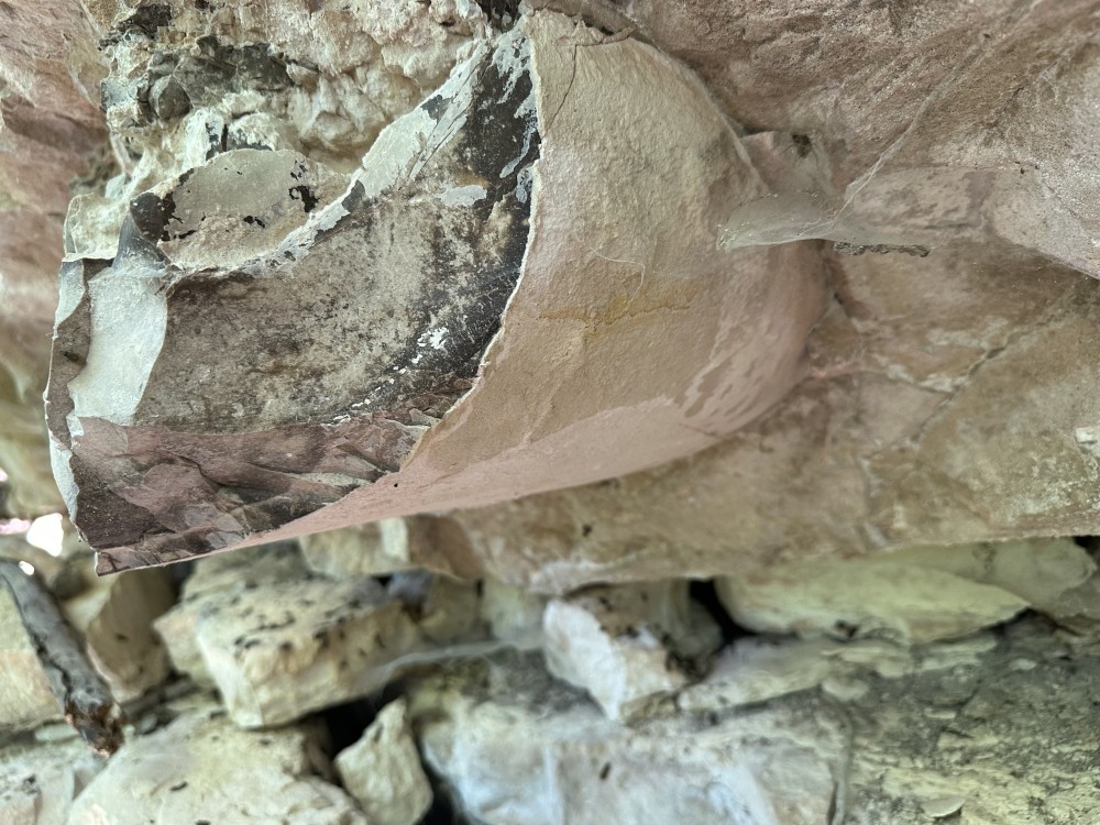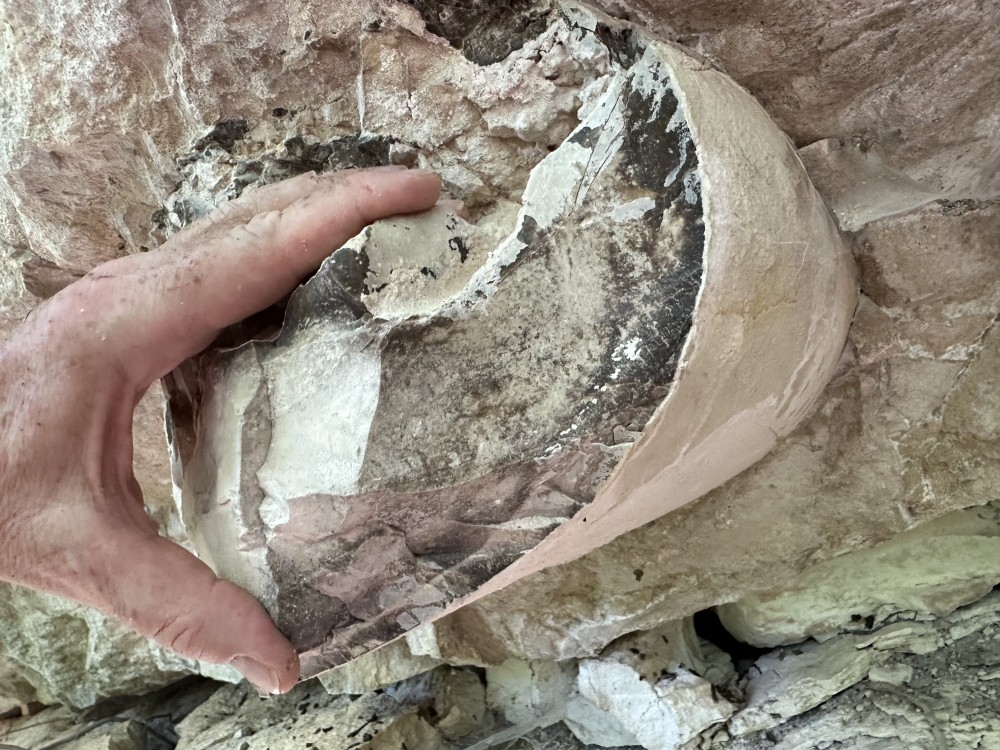 Dans les berges calcaires (stampien) du lit d’une ancienne rivière asséchée ce gros nodule de silex. À quand peut bien remonter sa première taille ? -