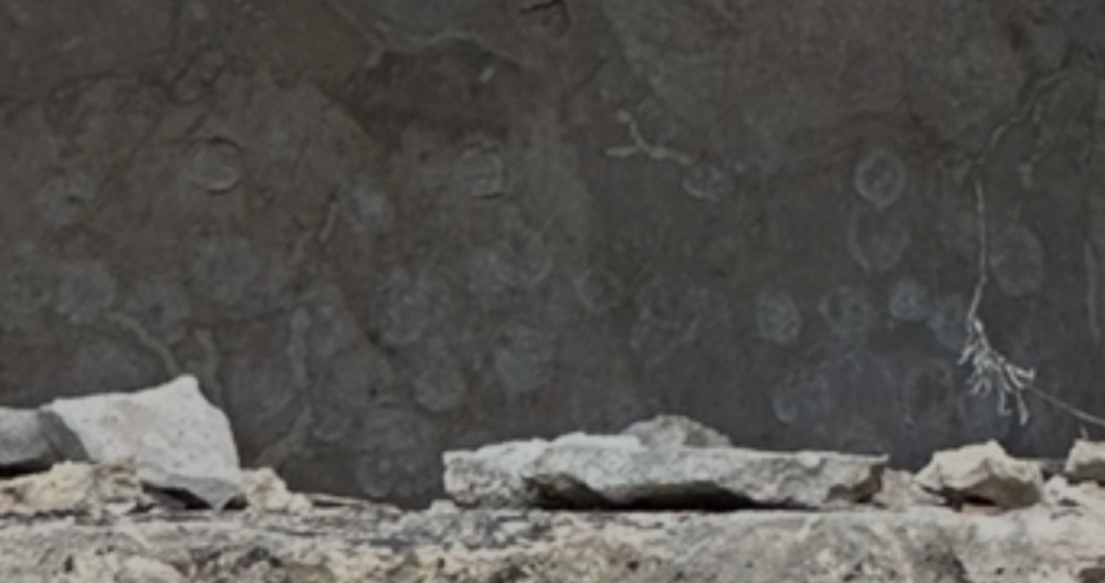 Oui ça pourrait être un sujet de forum « fossiles en ville » Sinon encore 3 formes circulaires toujours à la CIU. Anthropique peut-être mais dans quel but ? Sur seconde photo on distingue au moins 3 cercles… -