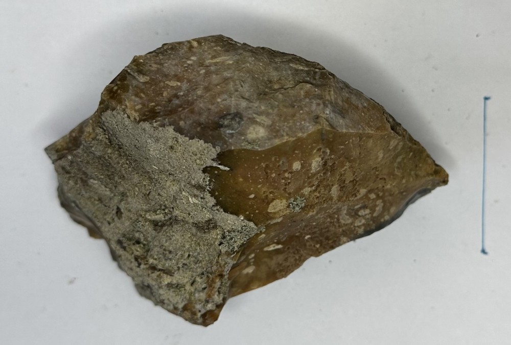 Bonjour, Silex ramassé au bord du chemin ce week-end en Provence, notion de néolithique et paléolithique dans le secteur. Qu’en pensez vous ? Nucleus ? Merci pour vos avis. La barre = 5 cm