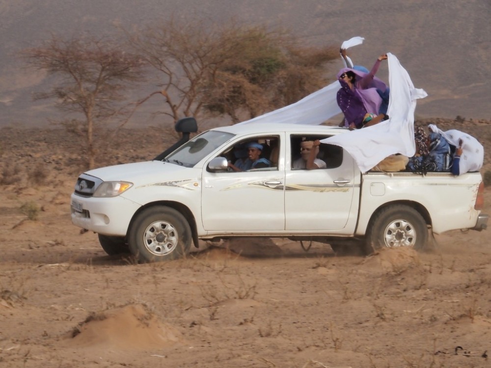Je réponds très volontiers ! Quelques images de Mauritanie 2024. Beau temps au nord d'Atar. Depuis le haut de la falaise de la caldéra du Guelb el Richat dont on distingue au loin le premier cercle. S'abreuver dans une guelta proche de Ouadane Ânes sauvages dans le chott Même lieu, en route vers de riants pâturages Un des canyons de El Beyed. (les plus habiles d'entre-vous trouveront mon véhicule mais ne pourront pas lire l'immatriculation, je l'ai floutée par souci de discrétion) Autre séjour dans le même lieu à l'occasion d'un mariage. Arrivée de la mariée Les femmes ont fait un concours de virtuosité pour les hennés Le chameau a passé un mauvais quart d'heure. Transport vers le campement (un peu de nettoyage de la voiture a été ultérieurement nécessaire ...) Une partie du campement (plus de cent personnes) Cuisine au clair de lune Quelques-uns de mes potes Pour les amateurs d'archéologie, dépôt de bifaces acheuléens (au minimum 300 000 ans) dans le désert