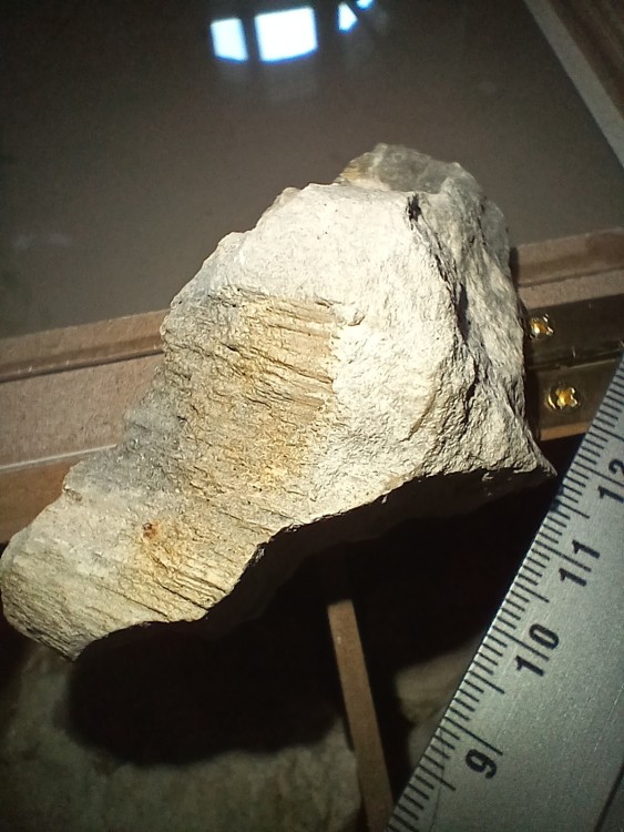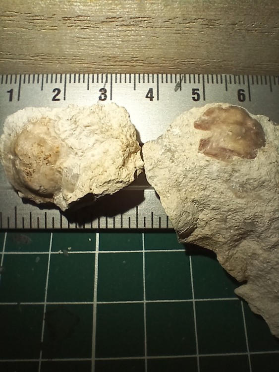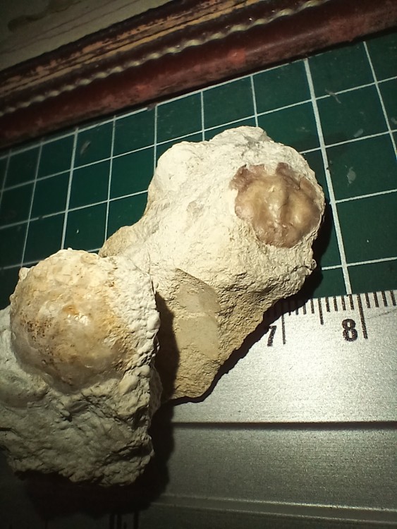 Je ne suis pas certain que la forme à gauche soit en rapport. Mais elle a été trouvée dans le même coin, j'imagine aussi une petite encoche (?), elle est bombée aussi. Je n'ai pas tout dégagé j'ai eu peur de casser.