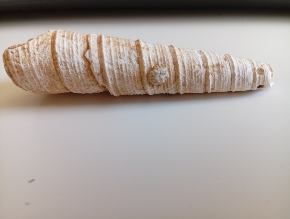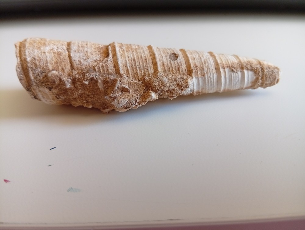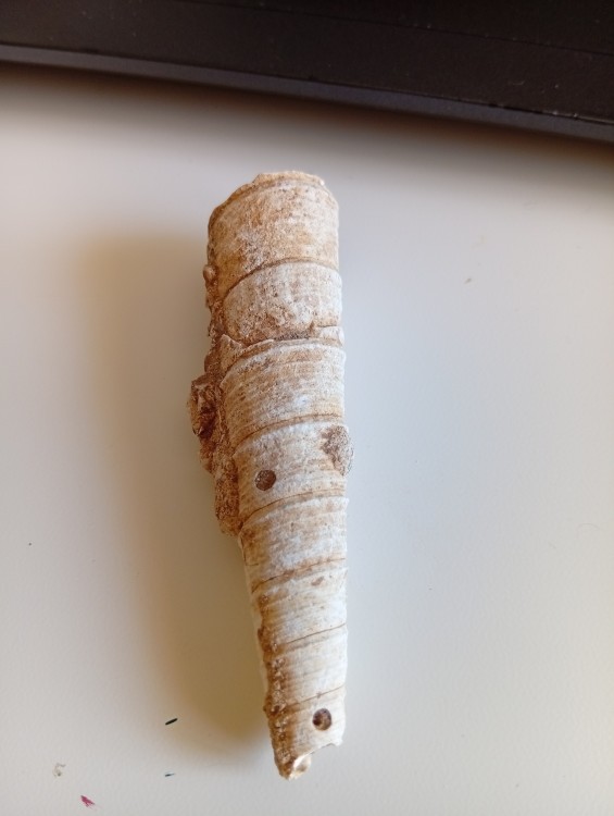 4. Bonjour ! Premier post ici pour moi, j'ai retrouvé chez moi ce petit fossile que j'avais ramassé à Chaumont-en-Vexin il y'a quelques années lors d'une sortie scolaire, avant de visiter le petit musée de fossiles de la ville. Avec quelques recherches je tombe sur le nom de Turritelle, pensez-vous que ce soit la bonne identification ? Je suis une novice haha. Merci de votre aide ! 😄