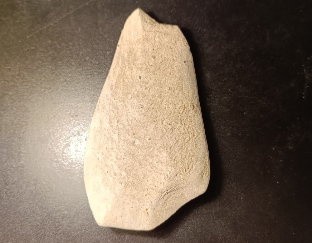 J'ai trouvé ce qui ressemble à une hache en pierre, taillée et polie.