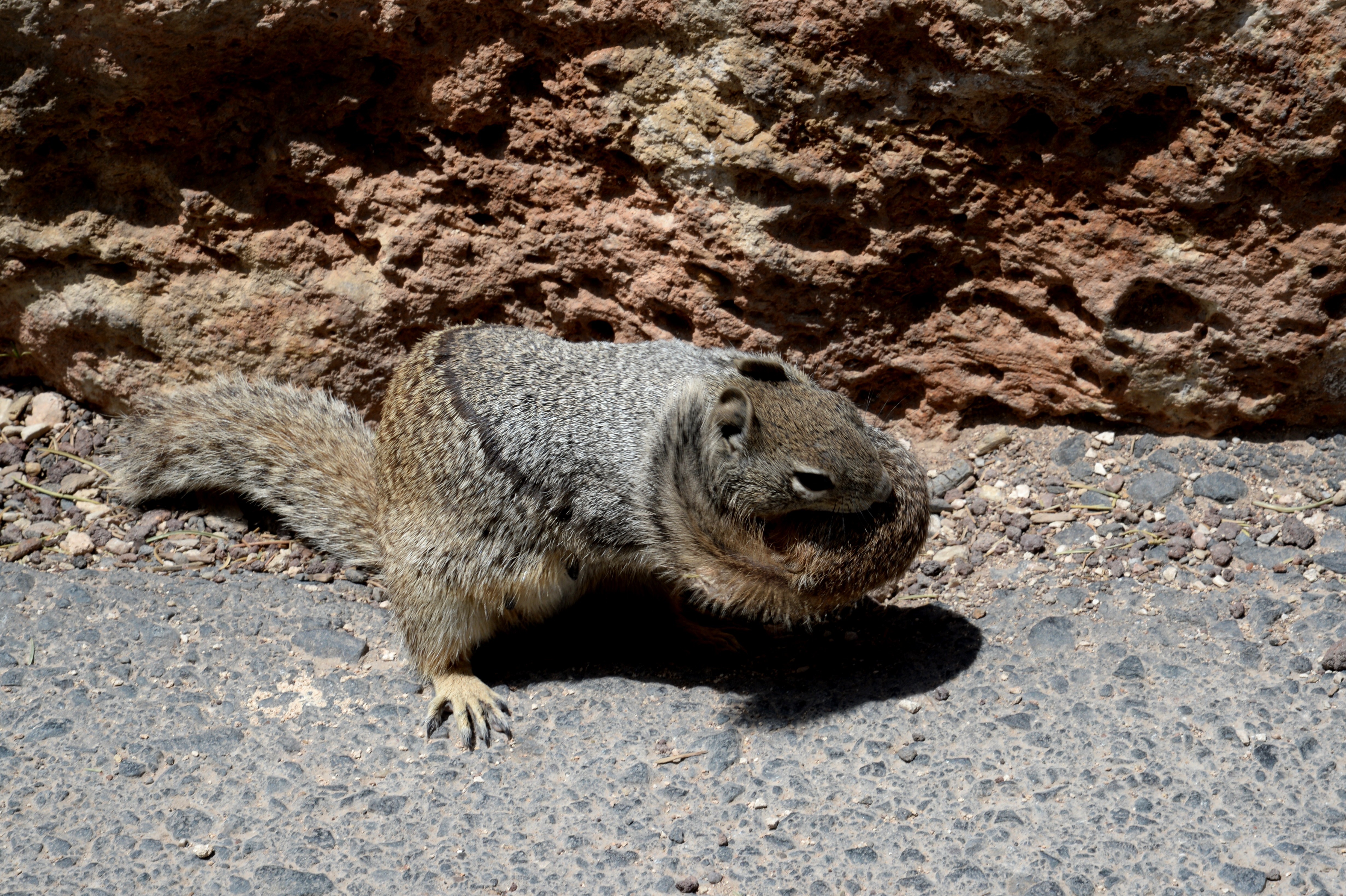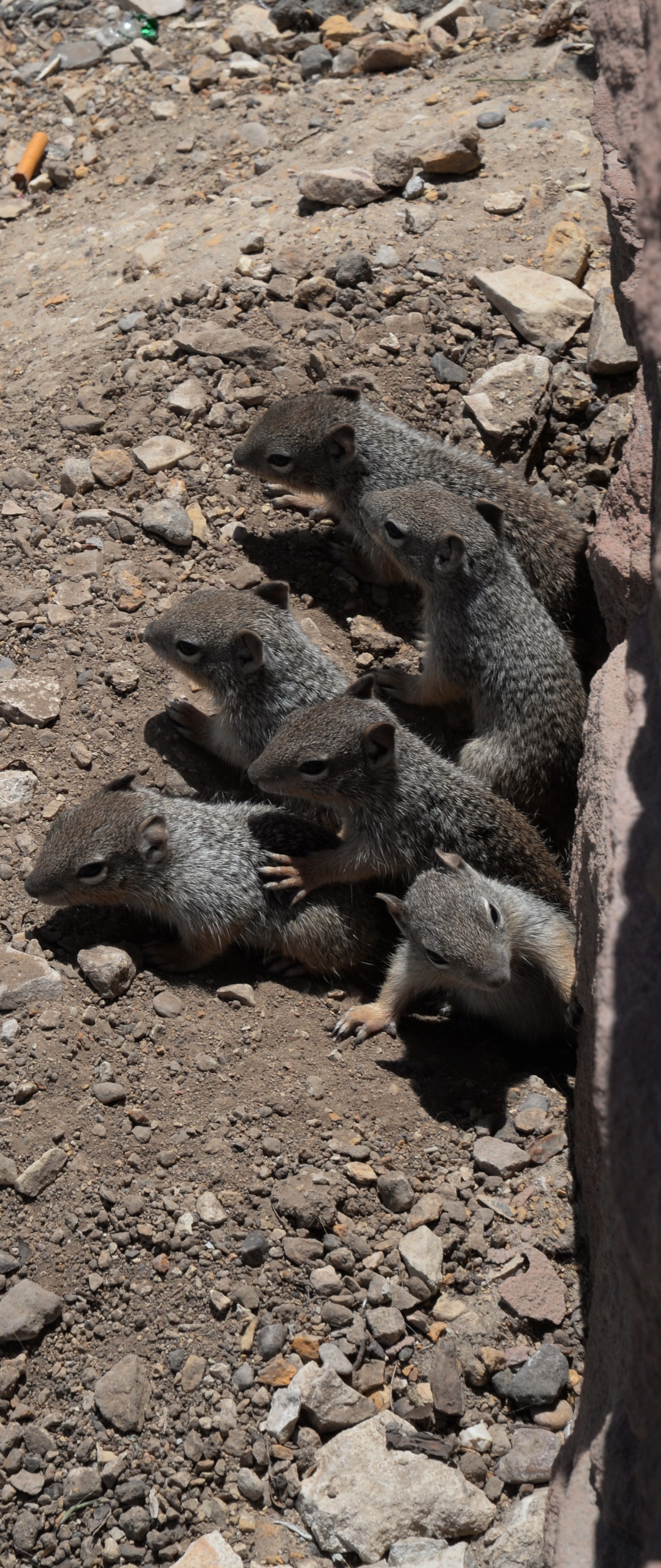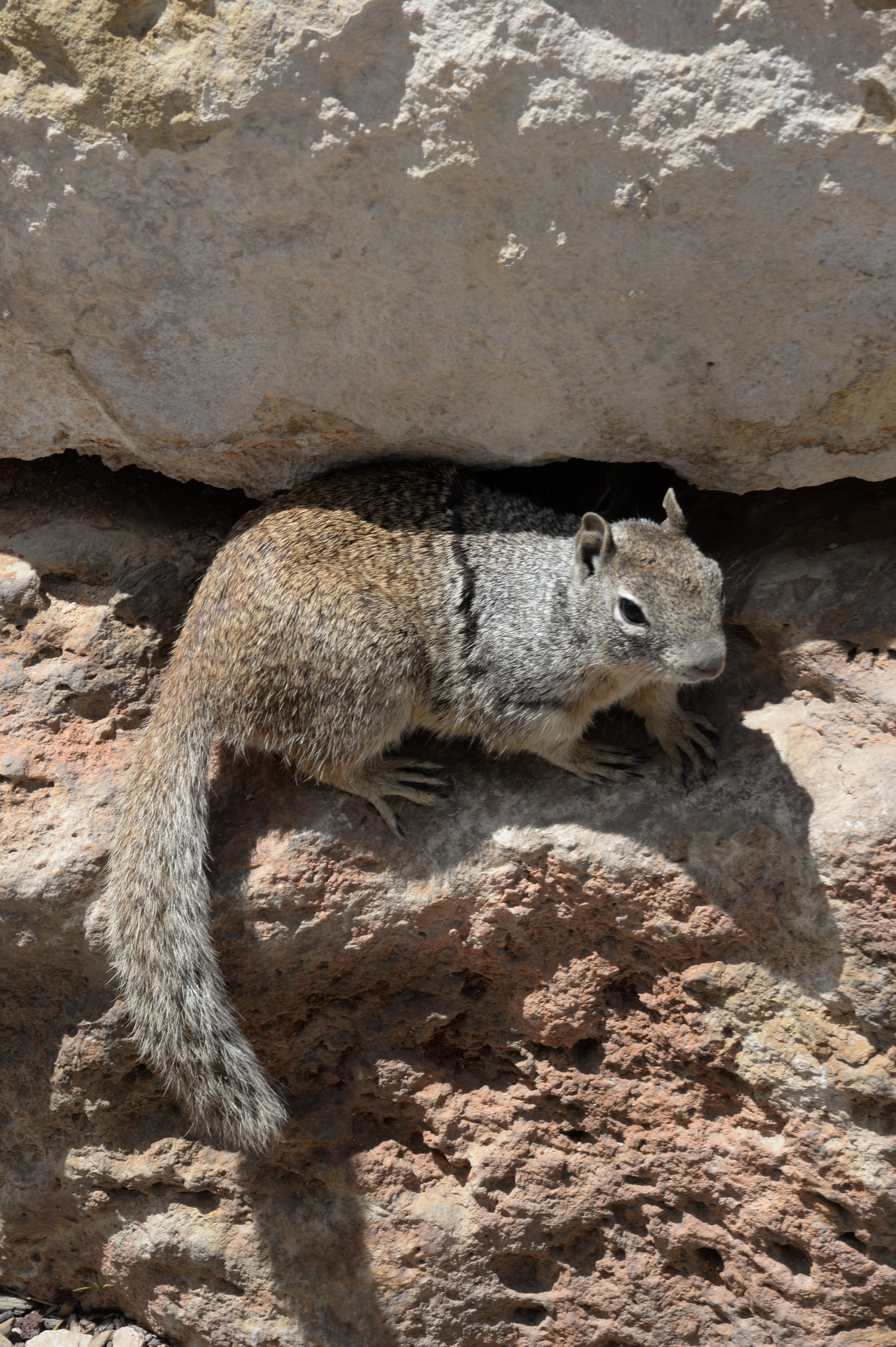 Bonjour et bien noté Acer, Les écureuils roux pour la caisse d'épargne et orange pour la téléphonie 😁 Merci en tout cas pour cette remarque totalement fondée. Hervé C Bon et pour me racheter, en voici une autre variété d'écureuil, avec une Maman qui transfère ses petits d'un point à un autre, c'est une rencontre faite au Grand Canyon, aux Etats Unis... Son nom à cet écureuil, sauf erreur de ma part, est Otospermophilus variegatus, ou écureuil des rochers. Photos 2 et 3 "C'est qui celui là, qu'est-ce qu'il me veut ? Photo 4 On continue le transfert, on verra bien ! Photos 1 et 5 les petits à transférer dans un autre trou. Hercé C -