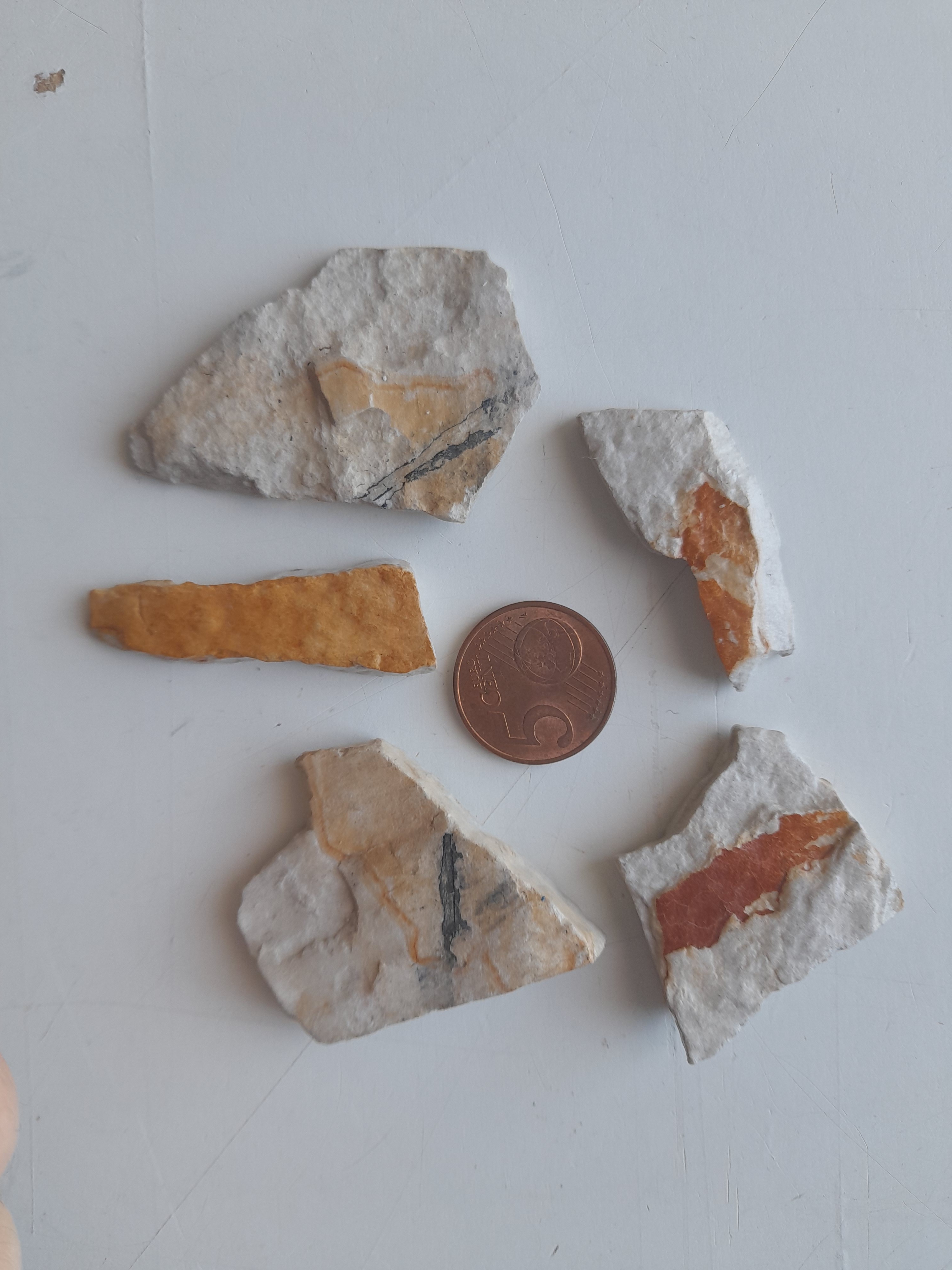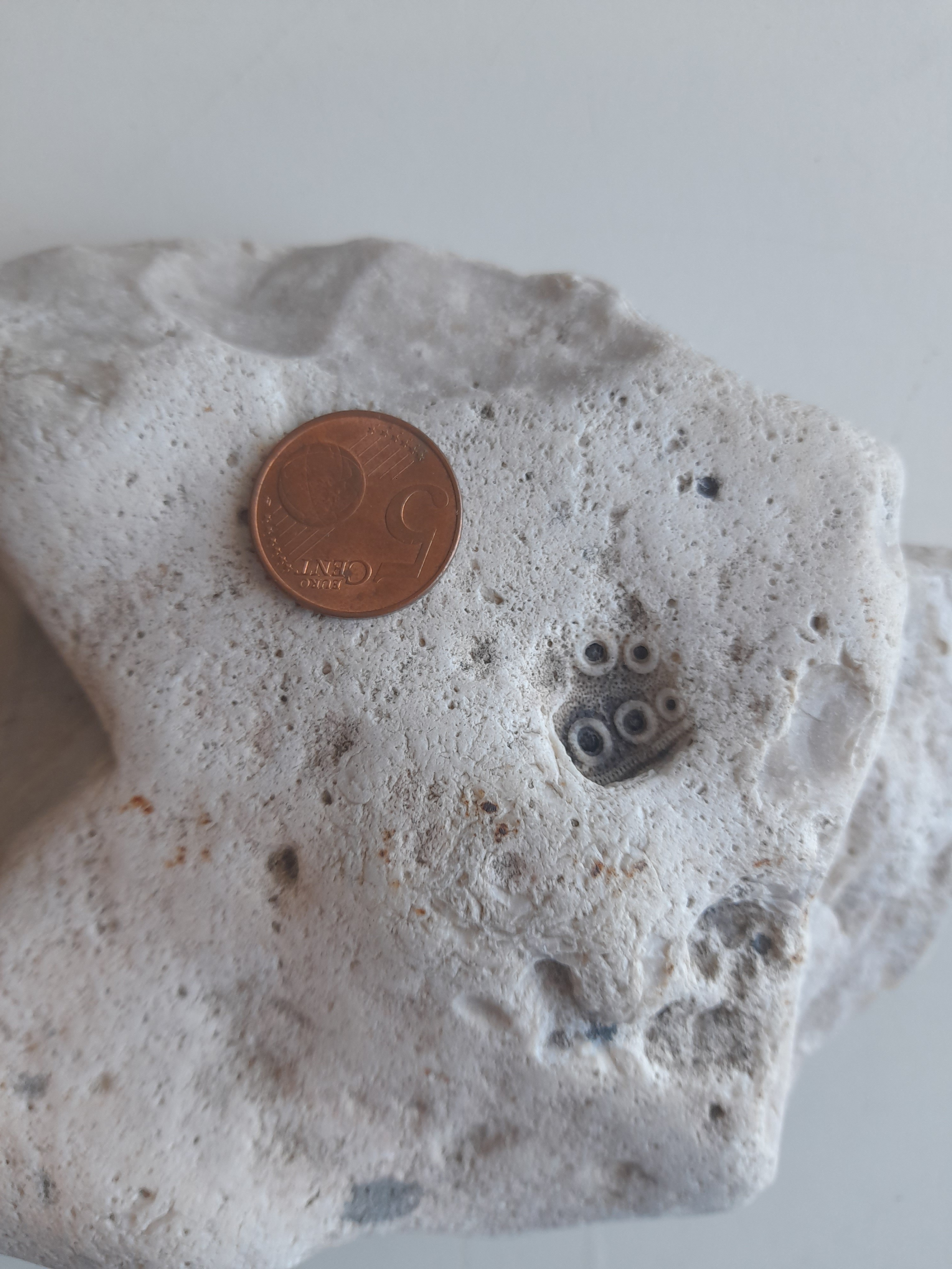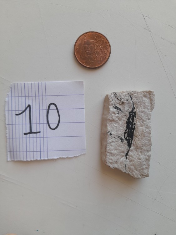 1. Merci pour votre réponse et votre suggestion. 2 : trous faits par des polydora ciliata? Est ce un fossile? 5 : désolé pour la mauvaise qualité de la photo je voulais montrer plus l'articulation je vous en remets ci dessous. 7 : le coquillage à l'air comme cristallisé, pareillement que du quartz 9 : une suggestion quand à l'espèce précise? 10 : sur celle a droite ( remise en photo seule ) on peut aussi bien voir les détails de la feuille qui me paraît complète 11 : je demandais parce que il me semblait que il n'y avait pas de telles colorations dans des diatomites... Encore merci pour votre temps Goat_G