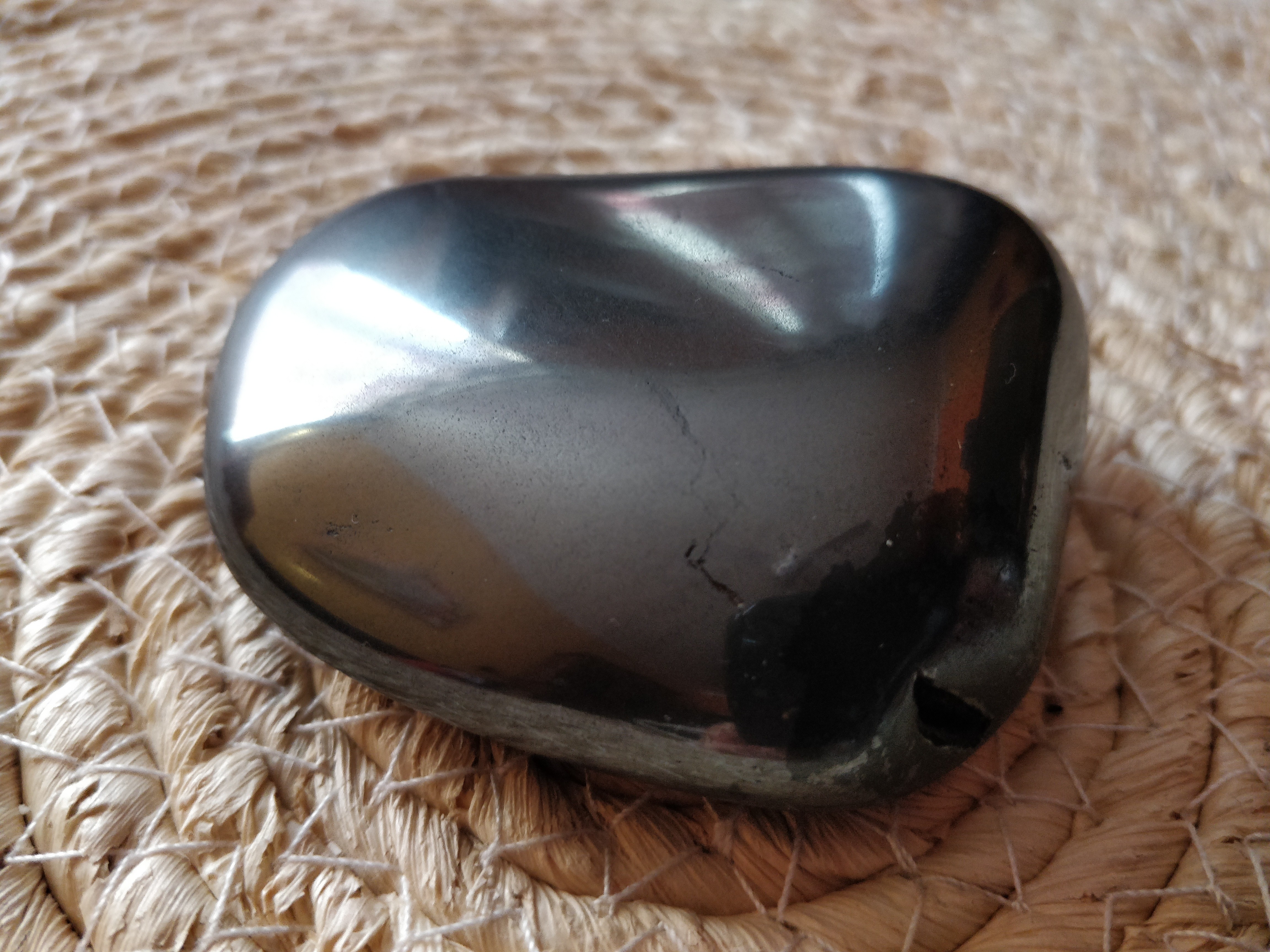 1. ... Et désolée pour le jeu de mot (Emma-tite). Le premier spécimen de ma collection est une hématite roulée du brésil. Comme je le dis sur mon profil, je suis d'Yssingeaux (43) et mes orientations scolaires ou professionnelles (salon de massage) sont très loin de tout ce qui tourne autour des minéraux ou des sciences de la terre... Je ne possède que très peu de minéraux "exotiques" ma collection étant surtout composée de pierres que je subtilise à la nature çà et là... La classification et l'identification de tous ces trésors est quelque chose de compliqué pour moi ^^' mais je pense pouvoir déjà réussir à déterminer leur duretés. Je me suis essayée au polissage en me procurant un petit tonneau Vevor trouvé sur LeBonCoin et je suis fascinée par les détails qui ressortent de certains spécimens qui semblaient inintéressants au départ. En parcourant un peu le site, j'ai été admirative en voyant la qualité de certains clichés O.O Faut-il du matériel professionnel pour prendre de si bonne photo ? Je pose la question car j'aimerais beaucoup faire des photos "avant-après" de qualités des merveilles qui passent par le tonneau à polir. J'ai hâte d'échanger sur nos passions communes.