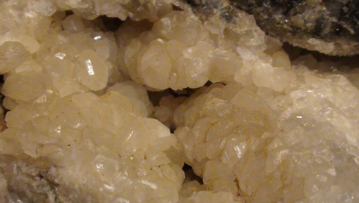 Bonjour à tous, trouvé dans les pyrénées sur un site sur lequel les zéolites (stilbite, chabazite) ont été décrites mais sont sensées être assez rares aujourd'hui. Les cristaux se présentent en petites géodes en remplissage de fissures. Les cristaux font quelques millimètres et les fissures sont centimétriques. Les tests me donnent les résultats suivants: - trace: blanche (calcite et chabazite ont une trace blanche) - dureté: raye faiblement le cuivre; ne raye pas la fluorine (donc entre 3 et 4) (calcite ne devrait pas rayer le cuivre et chabazite devrait rayer la fluorine) - densité (déterminée sur un echantillon qui contient aussi une partie de gangue): 2,3 (densité chabazite entre 2 et 2,2; calcite entre 2,6 et 2,8) - réagit faiblement au vinaigre blanc (je n'ai pas essayé à l'acide chlorhydrique). J'hésite entre calcite et chabazite (phacolite). La forme des cristaux ne me rappelle rien: je ne reconnais pas les "3 arêtes" classiques de la calcite... J'ai vu des photos de phacolite sur internet qui ressemblent beaucoup à mes cristaux d'ou mon hésitation. J'ai aussi essayé de mettre un petit morceau à la flamme de la bougie: pas de réaction à part quelques crépitements (la chabazite aurait dû fondre ?) Votre avis s'il vous plait. Merci. Jean-Marc -
