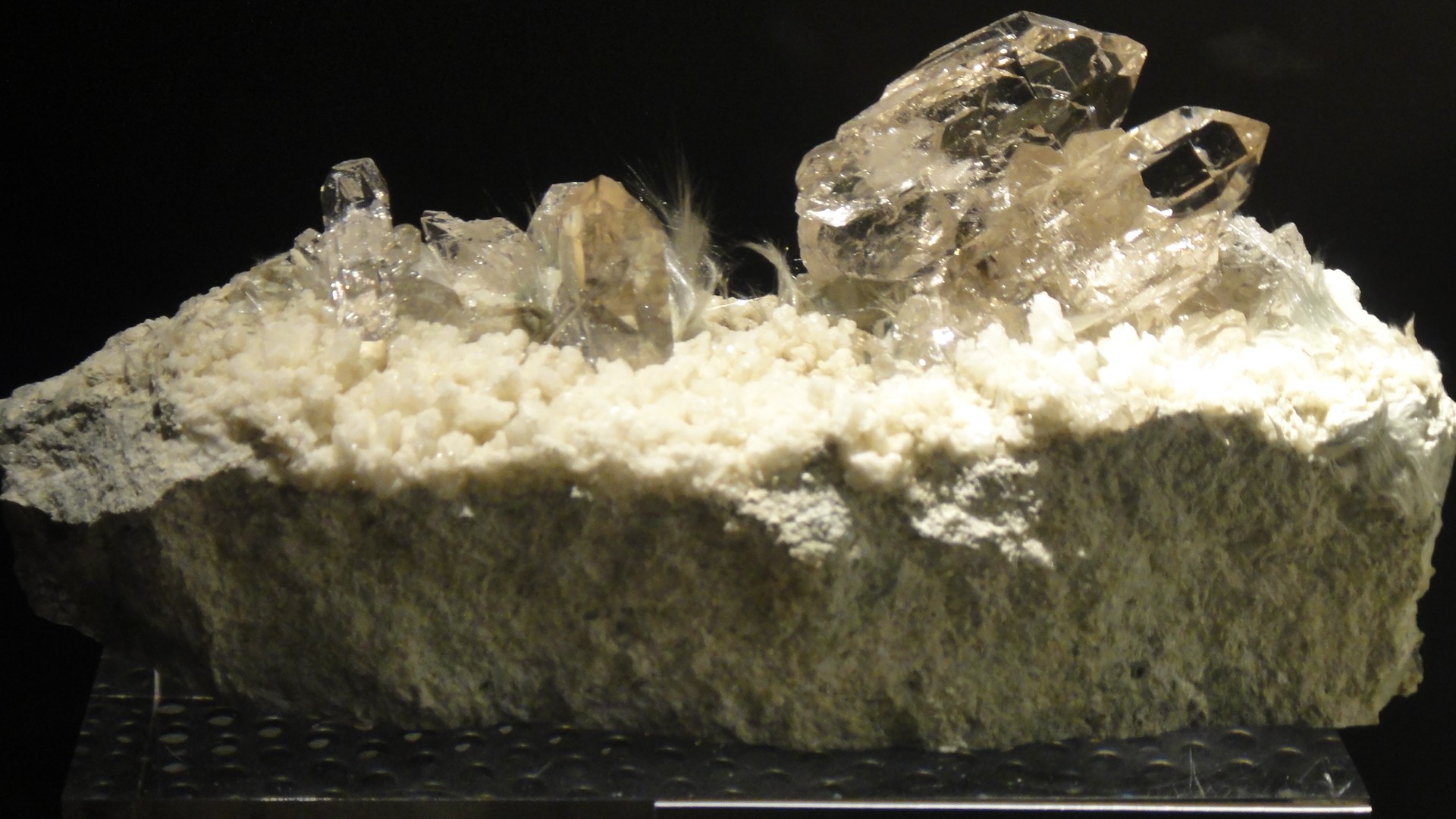 Cette pièce doit faire dans les 40 cm ! Le quartz environ 12 cm ! Un gars que je connaissais bien, parti il y a peu..... Cette année-là, il en avait trouvé des quartz avec la calcite, sur ce site..... -