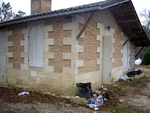 Merci pour vos réponses. J'ai trouvé différentes photos ici : http://tinyurl.com/yks55p4 mais il est effectivement difficile de se prononcer sur une photo. Je vais donc aller à la carrière de Frontenac pour avoir l'avis d'un professionnel. Sinon, qu'est-ce qui vous fait penser qu'il s'agit d'une construction récente (je parle bien sur de la partie Pierre et briques et non de la petite extension en parpaings de mâchefer construite à côté) ? -