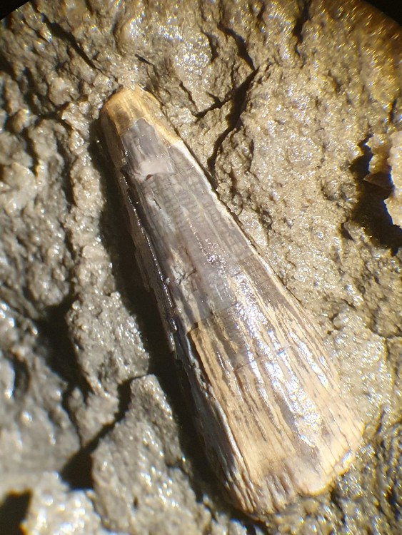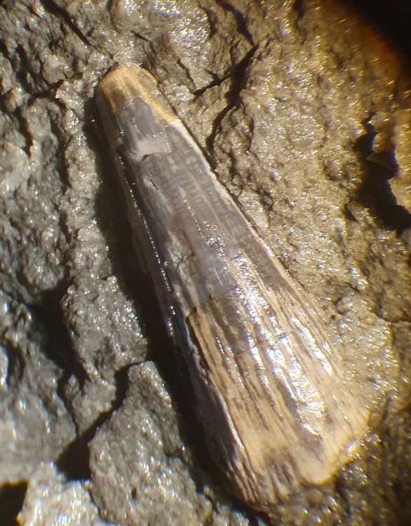 Merci pour la réponse, j'ai pensé de suite à une dent de crocodile mais en postant par ailleurs les mêmes photos, ichtyosaure a été aussi proposé ce qui me laisse dubitatif.