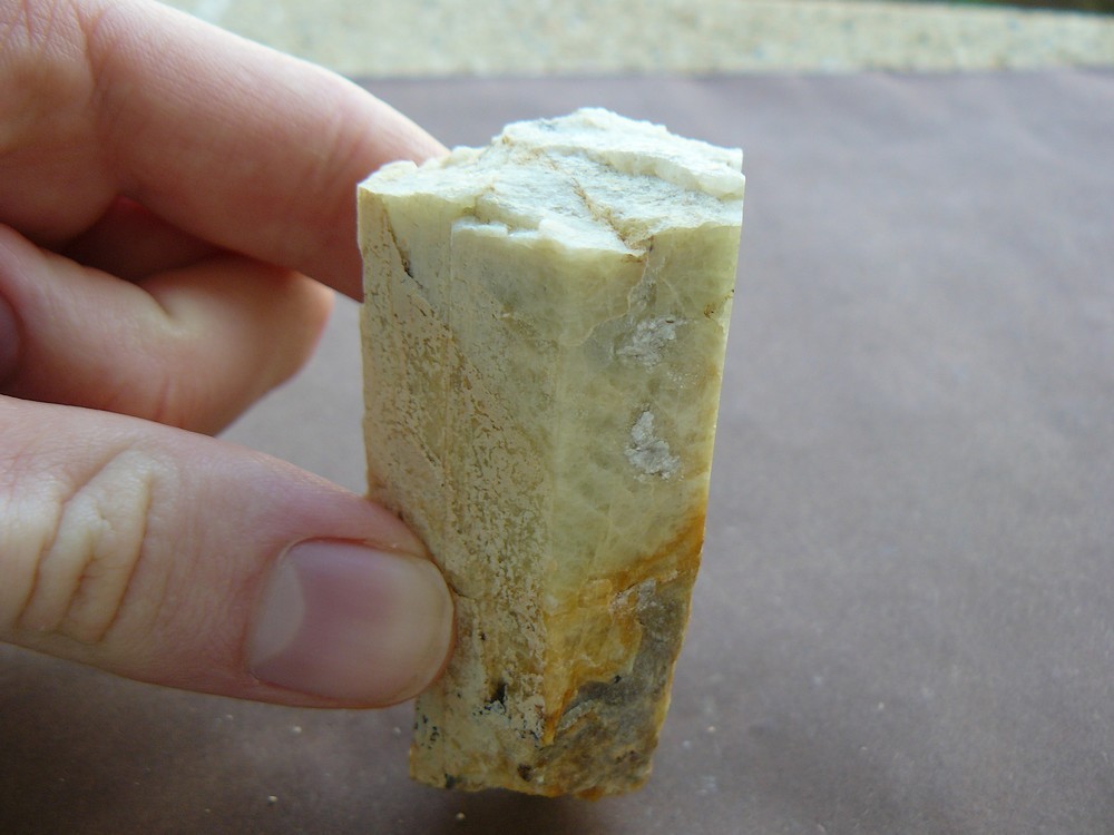 Bonjour François, Oui probablement Pécout, les étiquettes se sont mélangées dans mon tiroir à cailloux d'Ambazac^^. Les abords ont été dégagés effectivement, on le voit sur la gangue. En ce qui concerne le quartz sur orthose, je ne savais pas que son "éclat" était si rare pour le site, selon les commentaires sur un autre forum. J'aimerai bien un jour venir visiter et prospecter cette magnifique région, elle m'a toujours fait rêver. Pour continuer sur la série, un béryl de la carrière d'Angelard (87). -