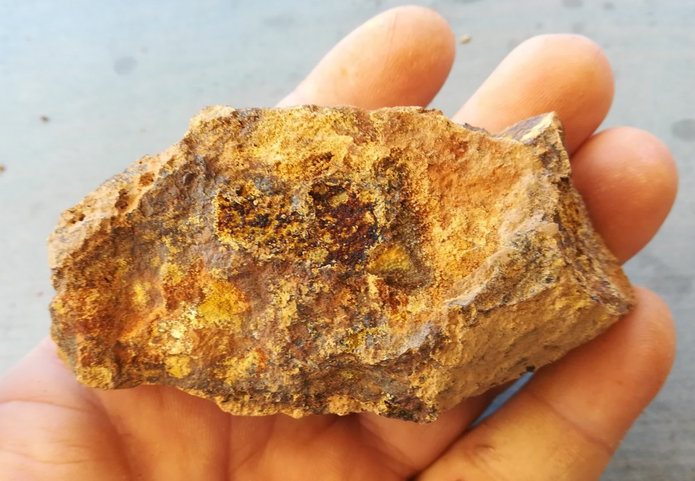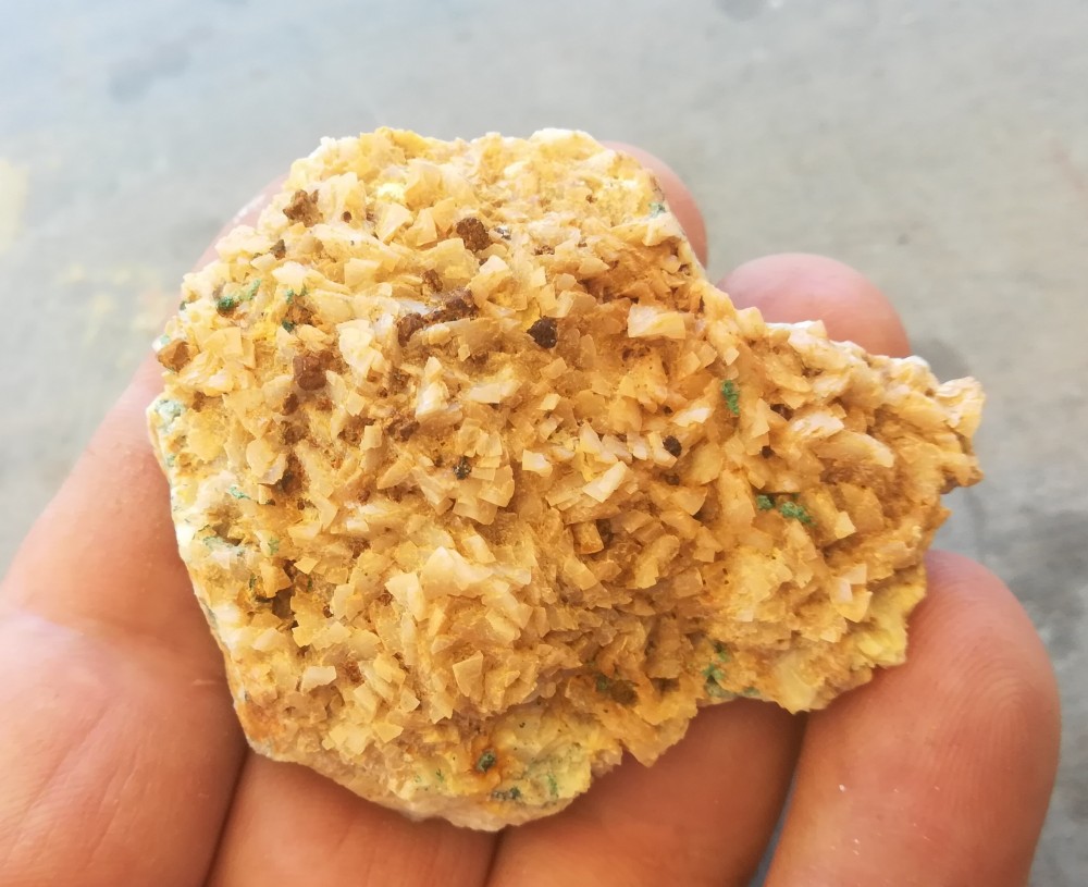 Oui dolomie avec pseudomorphose de chalcopyrite en malachite et chalcopyrite oxydée -