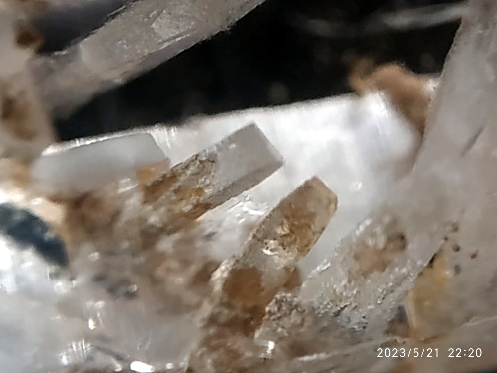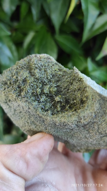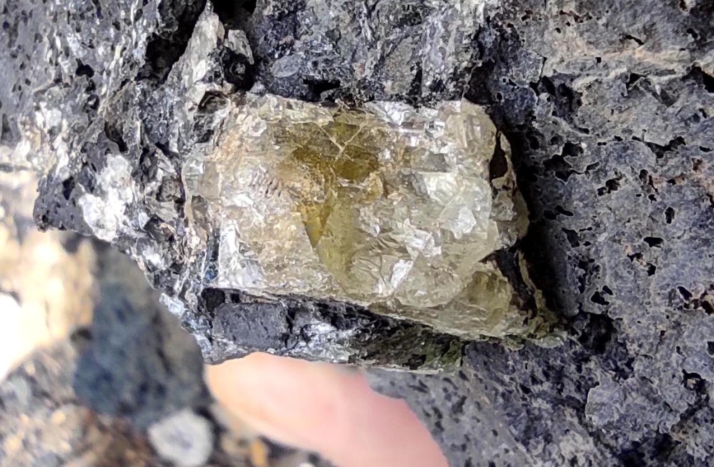 Bonsoir Un des gisements d'augite de l'ile de la Palma, Canaries, donne de temps à autres des cristaux de fassaite. Celui ci mesure plus de 2centimètres et dessus ont poussé des cristaux de fassaite assez transparent. Cordialement. VID_20230224_150856.mp4 -