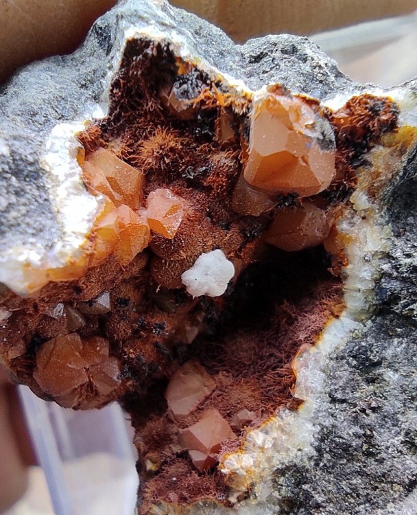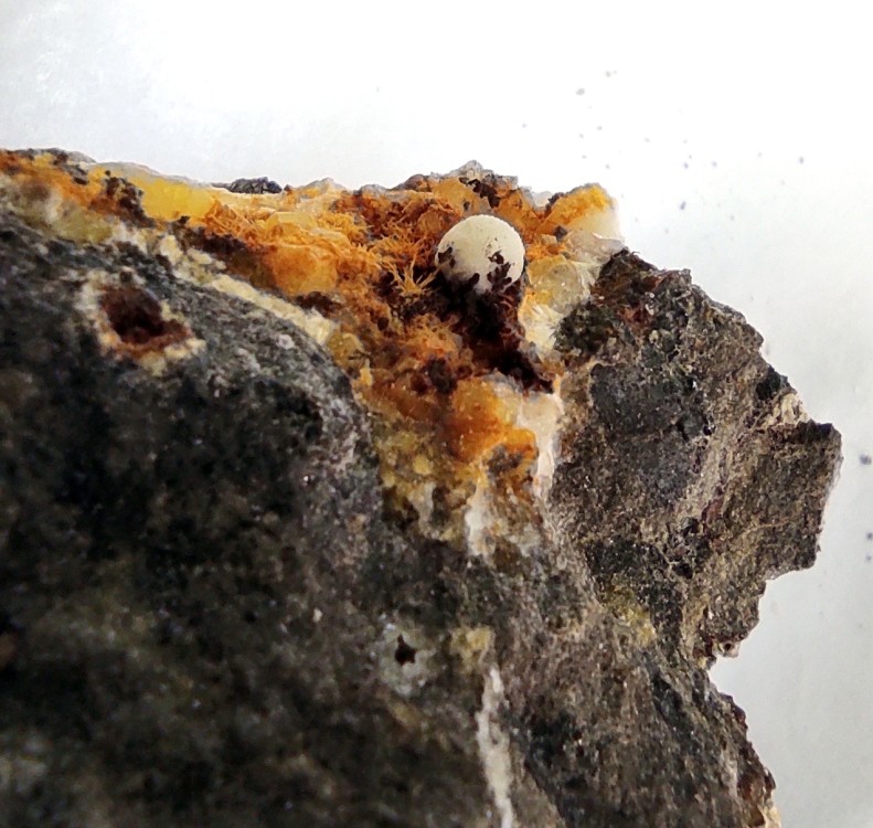 Bonsoir deux pièces de Grande Canaries, Calcite,smectites arborescentes et thomsonite ( minéral blanc), une enveloppée d’oxydes de Mn. Cordialement. -