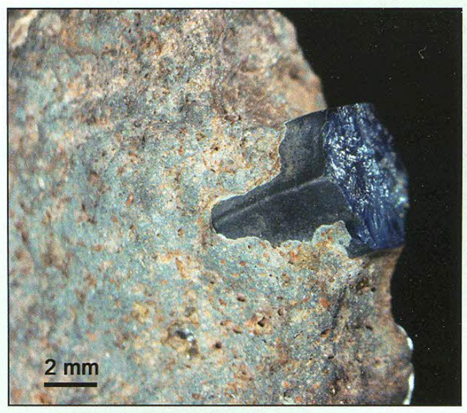 Salut Darna08, oui effectivement j'avais vu ce caillou à Sainte-Marie, et avait aussi fait une photo... En regardant à nouveau les photos après ce week-end en Haut-Allier, j'ai aussi pensé à ça... mais je ne suis pas certain que ça corresponde vraiment à la chimie de ces basaltes... Pas vérifié ceci dit. Si je récapitule un peu mes observations, ça donnerait : bleu légèrement irisé, transparent, fracture conchoidale, dureté pas testée, la taille fait environ 5mm... Pas eu plus de temps que ça pour faire des tests dessus malheureusement... En dernier recours je pourrai éventuellement passer l'échantillon au microscope électronique à la rentrée. Parmi les hypothèses sur la nature de ce caillou, je dirais, dans l'ordre de vraisemblance selon moi : - saphir - feldspathoïde type hauyne - plagioclase - verre volcanique... (même si j'y crois peu). - quartz (pour la cassure, et parce que ça m'a été suggéré, mais sans aucune conviction par ailleurs) Alors, qu'en pensez-vous ? Je vous rajoute une photo sous un autre angle: Ps: voici une copie d'une photo dans le RM sur les saphirs et rubis de France, du Mont Coupet, un saphir enchâssé dans sa gangue de basalte, mais bizarrement celui-ci est bien blanc sur la photo... -- Pour poursuivre un peu l'itinéraire minéralogique du week-end, un autre monument, la mine de Marsanges. Le carreau de la mine: Un peu plus haut, le fameux trou de Barlet, en bonne partie rebouché (on y trouve un peu de violet par-ci par-là...) -