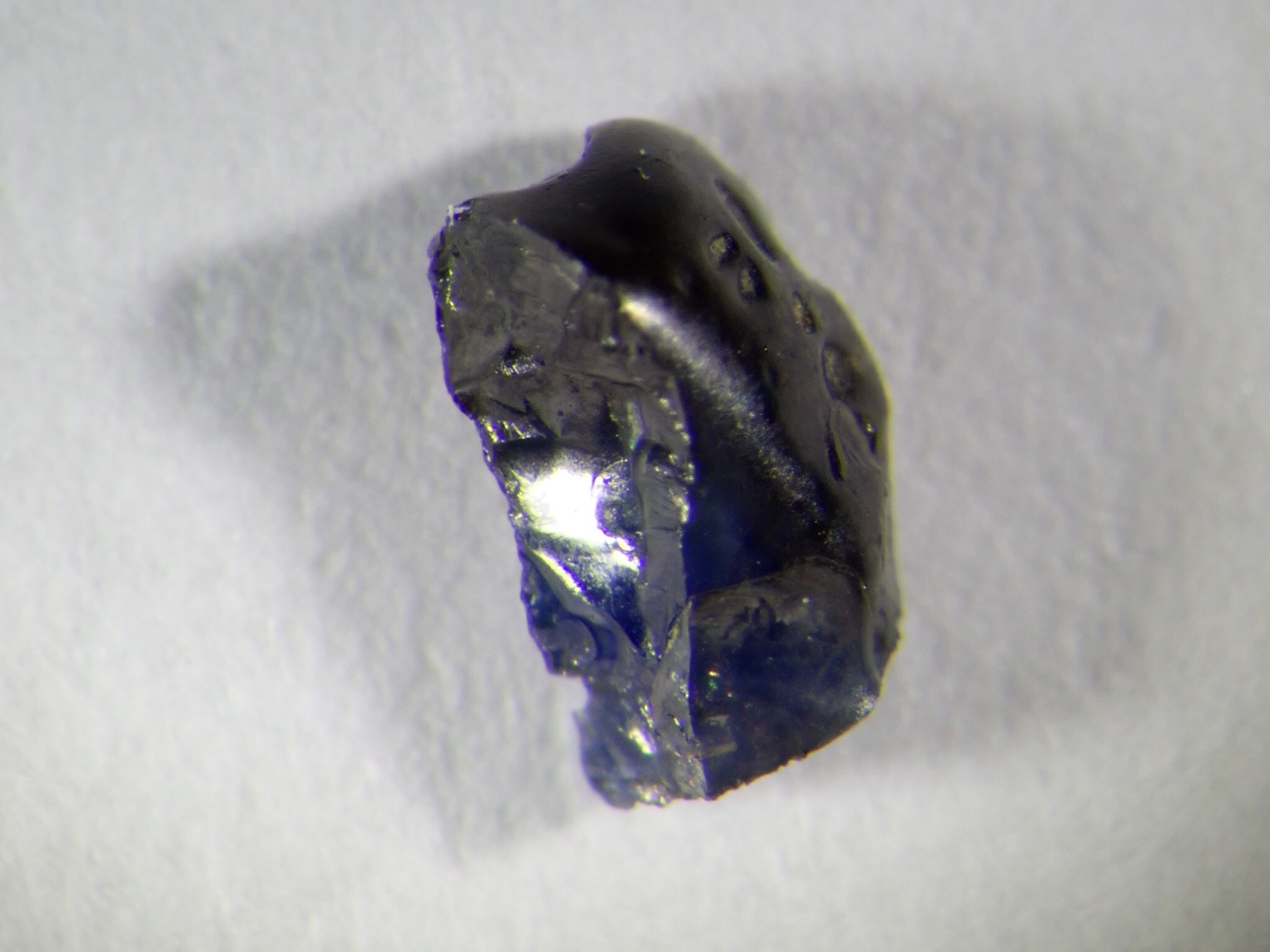 Salut Araçuai et le sablais, je viens de faire des photos à la bino, et le test de l'aimant. Et: d'un, de très près, ça a l'air opaque (et la plupart des personnes à l'avoir regardé semblaient d'accord sur ce point - sacré reflet!), et ça attire fortement l'aimant... Donc, effectivement, ça semble être une magnétite. Petite déception, mais je suis curieux de savoir ce qui donne cette couleur franchement bleue à la magnétite... En compensation, quelques photos bino de l'autre saphir (orpaillé, celui-ci, le premier dans les tubes ci-dessus), qui lui, n'est pas attiré par l'aimant et raye le quartz (taille 2.5mm) : Ce qui est assez surprenant, c'est qu'il est bicolore bleu-bleu beaucoup plus sombre... les deux parties rayent bien le quartz. Merci pour votre aide en tous cas :) -