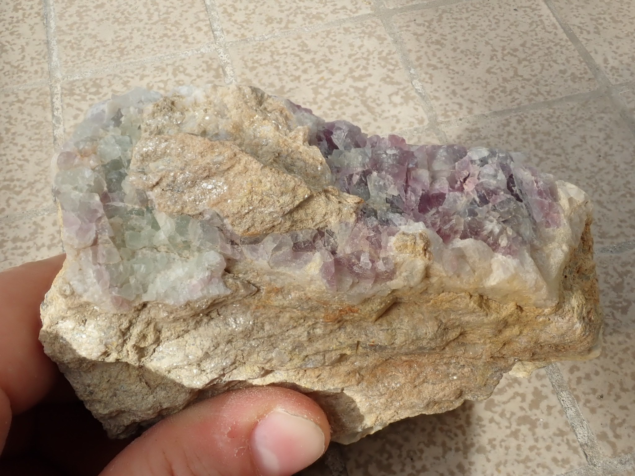 Pour en finir avec les photos de ce week-end tout de même assez réussi, un autre morceau de corindon sur pargasitite: et puis des cubes de fluorite provenant des déblais de la mine de Marsanges: et des choses un peu plus colorées : -