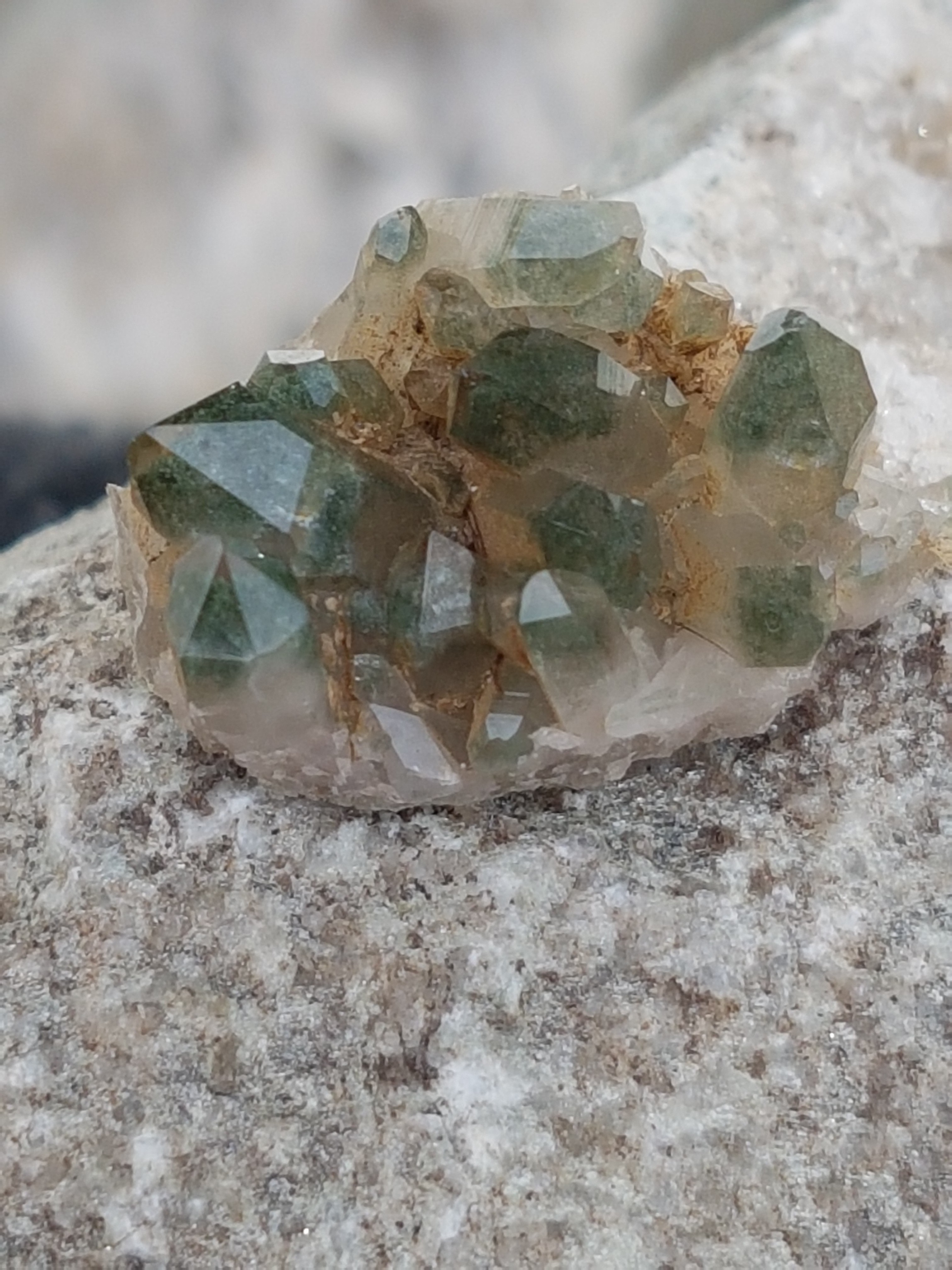 3. Bonjour Voici 1 de nos trouvailles des 2 Alpes mais nous ne savons pas ce que cela peut être cette pierre a été trouvée près de quartz chloriteux. Pas de réaction au vinaigre. Merci par avance pour votre aide !!