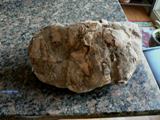 8. Agate trouvée au mont Lyall en Gaspésie au Québec. Configuration particulière une fois coupée. Le chapeau c'est de la calcite, pour le tronc ou le pied, vous aurez reconnu l'améthyste... C'est devenu un bel appui-livre
