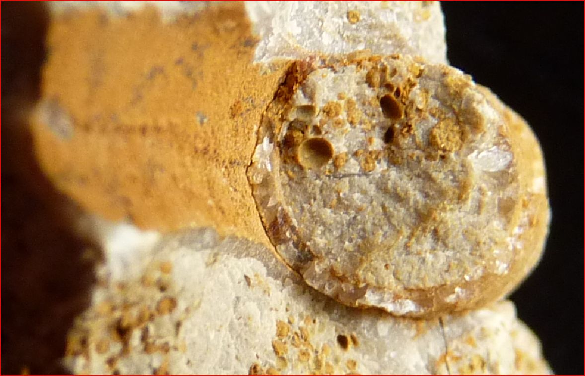 17. Salut à tous, Bon d'accord mon sujet n'est pas très passionnant , mais je suis intrigué par cette formation . Sur la partie de droite la section est circulaire ce qui , en effet , fait penser à un remplissage de terrier . Mais sur la partie de droite , on voit 3 couches : couche du coeur : comme un remplissage de terrier , puis une couche en calcite avec une espèce de suture ,en effet , et la couche "ondulée" qui n'est peut-être qu'une partie d'un autre fossile ... D'autre part l'empreinte externe centrale montre de fins plissements . Alors voilà , je me demandais si ce n'était pas un fossile d'un ver ou d'un autre animal ... À plus