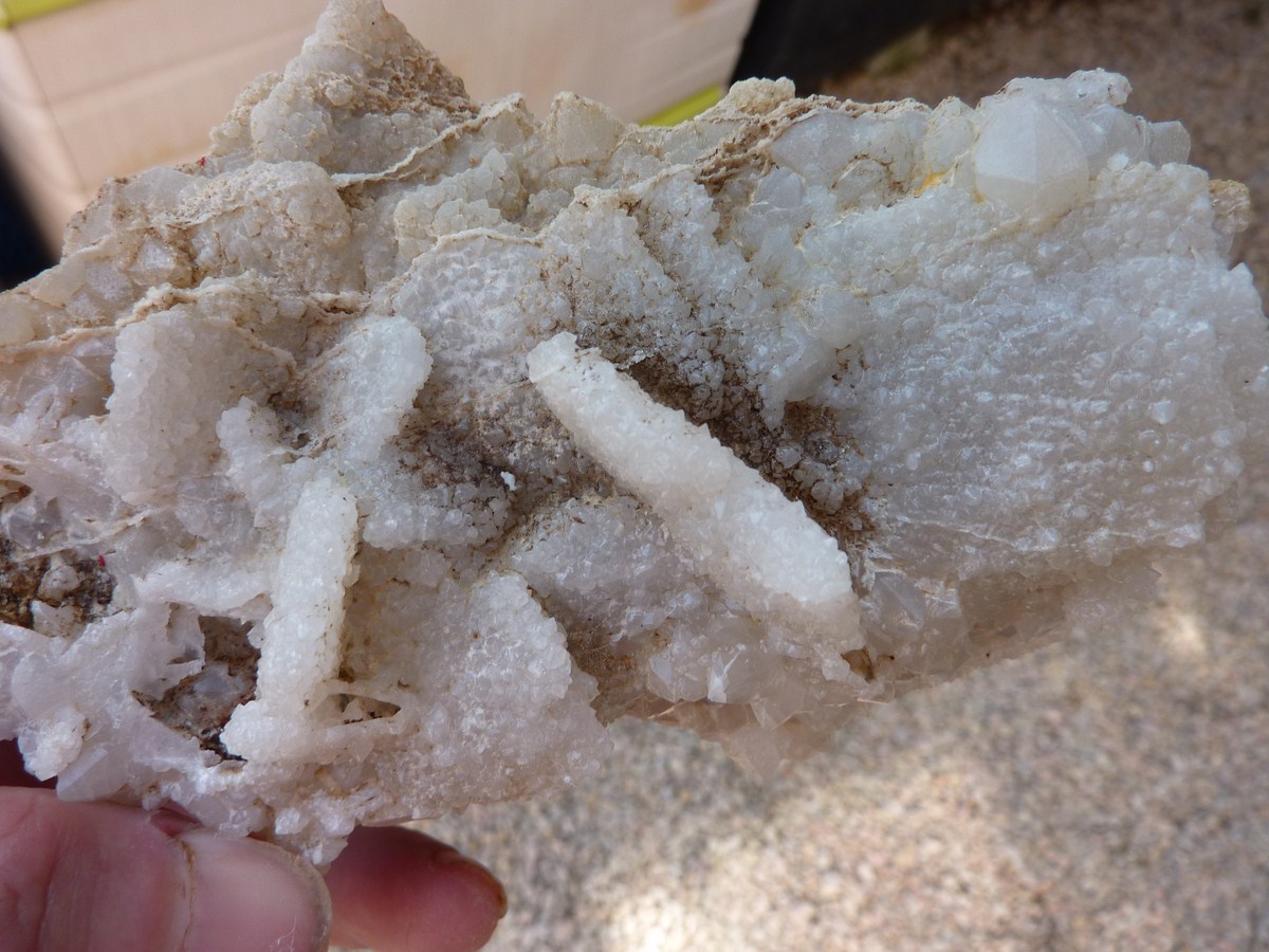 Et voici une trouvaille de hier ,a la mine des porres dans le var. Une grosse barytine cretée de 25 cm ,et une autre de 15 cm. Le déluge du mois dernier a provoqué quelques éboulis ,et j'ai trouvé un endroit ou il y en a plein!! Il y en même une qui doit faire plus de 100 kg ,et pas pu bien sûr la ramener!! Il y a plus qu'a se baisser pour ramasser!! -