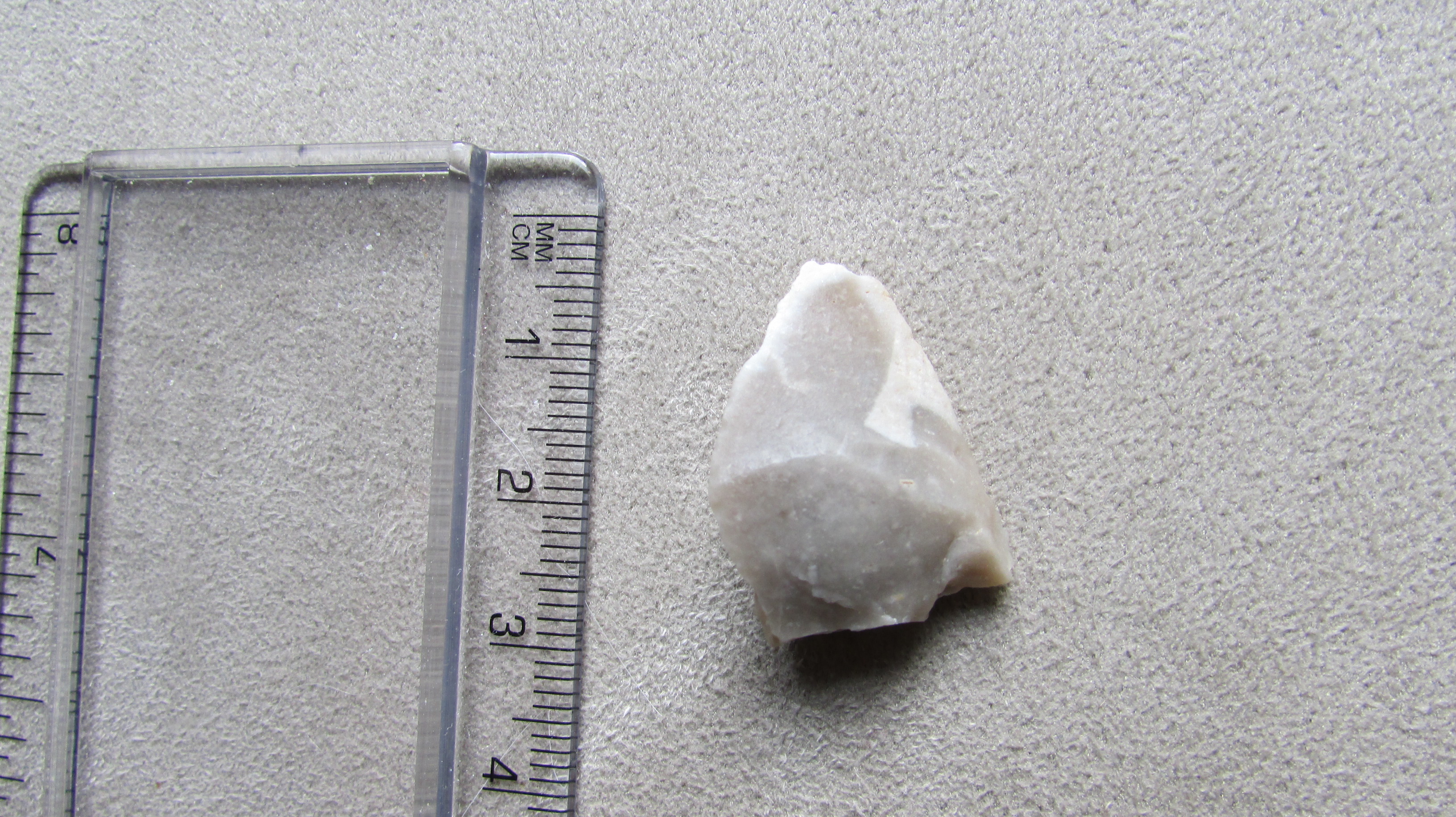 En vérifiant plus tard sur internet, j'ai vu qu'il y avait un site datant du paléolithique signalé pas très loin (je dirais 200 mètre à vol d'oiseau) mais je n'ai jamais été confronté à ce type d'objet auparavant et me demandais donc si je me faisais des idées ou s'il s'agissait vraiment d'une pointe de flèche. A priori, les contexte géologique et archéologique semblent concorder, la pierre ressemble fortement à une point de flèche dont la partie basse est cassée nette.
