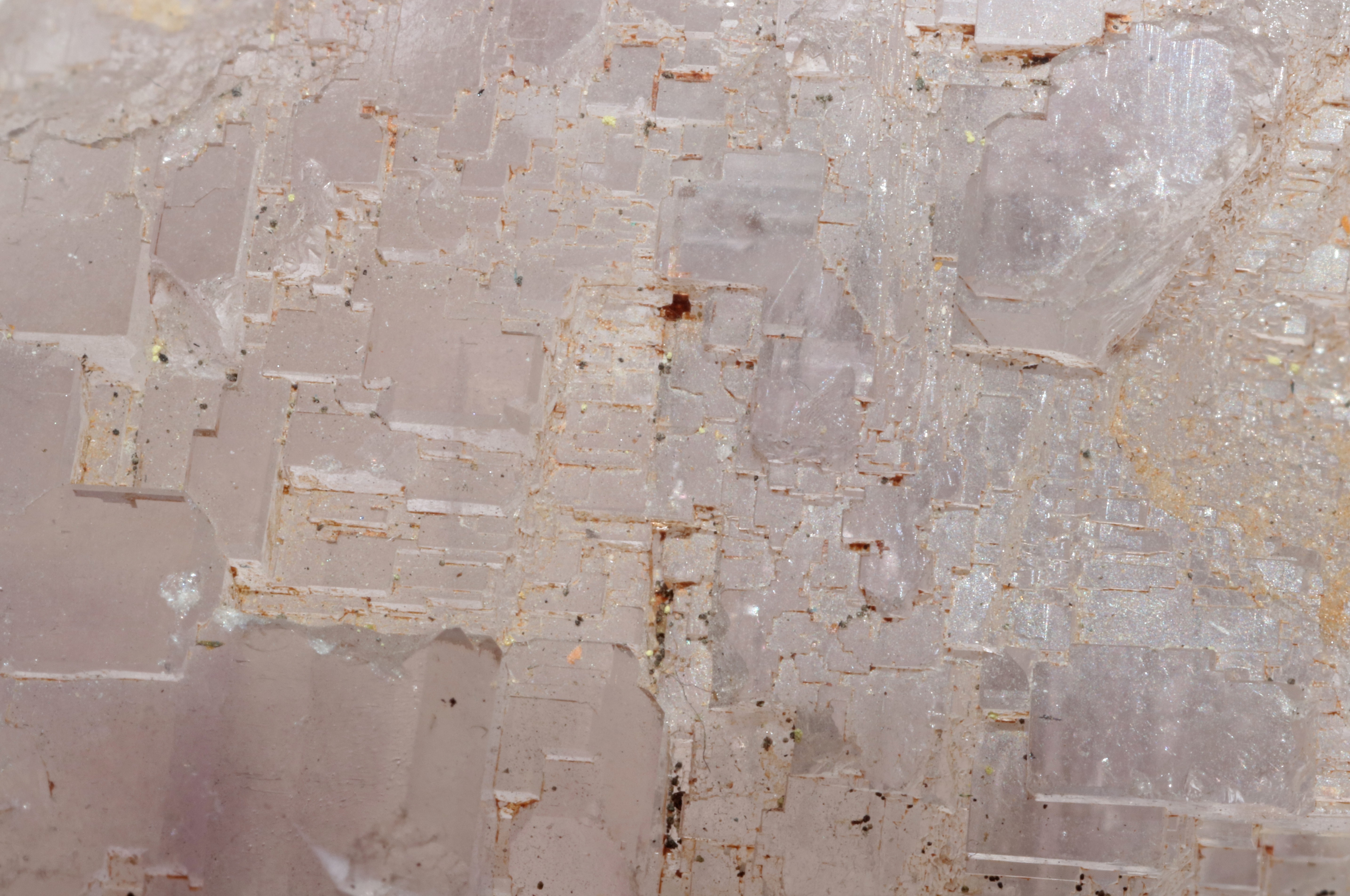 Tant que vous êtes chauds, en voilà un autre assez curieux. 8 cm de long sur une épaisseur max de 3 cm. Un coté avec de gros cristaux, p-e de la fluorite ? De l'autre des cristaux en petits buissons, p-e du quartz ? Et entre les deux une matrice cristalline violacée que l'on aperçoit coté gros cristaux: Et un autre, 6 cm dans sa plus grande dimension, donné pour être de la dolomie et de la calcite du Gard, vous confirmez ? Une idée de l'origine précise? Les couleurs de mes photos sont plus jaune que la réalité. Amicalement. Xavier -