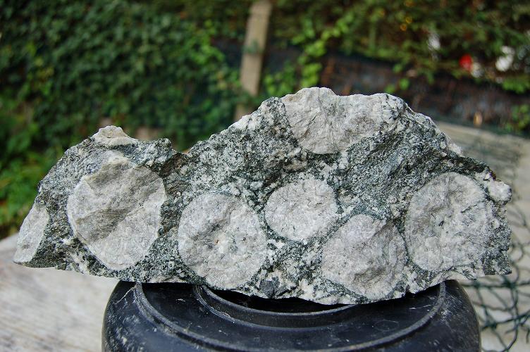 15. Bonjour On m'a vendu récemment une diorite de Corse, sans plus de précision sur la provenance. Les orbicules blanches n'ont pas une structure concentrique (contrairement aux diorites de Ste Lucie) diamètres : 4 à 6cm Merci de vos suggestions quant à la provenance. Je joins un photo