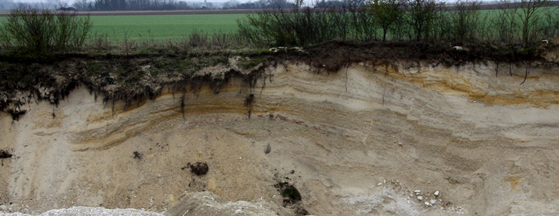 Selon la carte géologique, on a du Fy, soit une terrasse wurmienne ou antèrieure. La nappe aquifère est à un m sous la base de la coupe (3m de haut). La faille d'Omey, visualisée par micropaléontologie, est à mons de cinquante m de la photo (selon la carte géologique Fére Champenoise, au 1/5O000). La déformation observée est elle: - un glissement sur pente de terrrasse alluviale; - un effondrement karstique; - une déformation périglaciaire; - l'expression en surface d'une faille acive au quaternaire. J'attend vos réponses. -