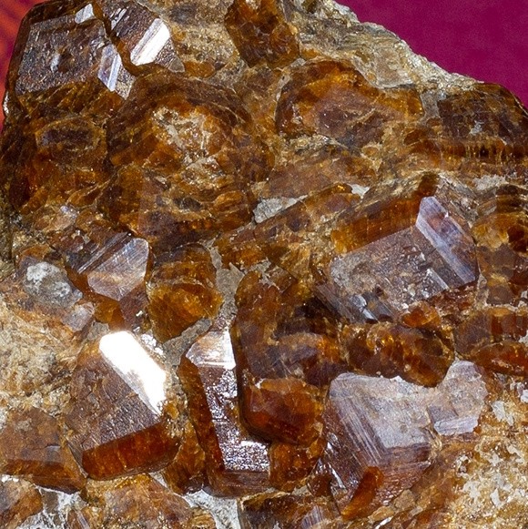 9. Almandin. Col de Palomère (Pyrénées-Orientales) Cristaux entre 1,4 et 1,6cm. Merci à Henri pour le sciage/polissage