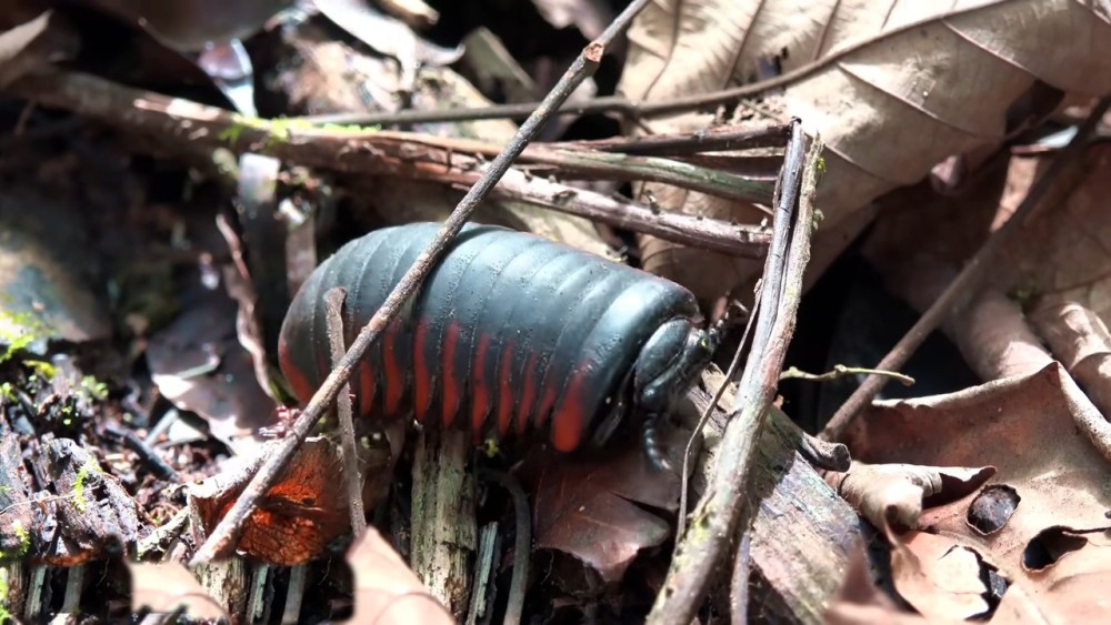 13. Cette bêbête m'a rappelé un documentaire que j'ai regardé récemment sur Youtube... et je l'ai retrouvé. Je mets ci-dessous deux captures d'écran, en précisant que le reportage a été tourné à Bornéo. Peut-être un lien de parenté malgré l'éloignement géographique ?
