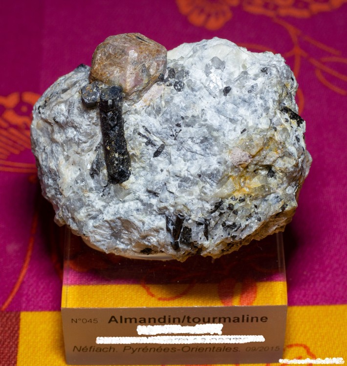 Affleurement découvert par Aldebaran. Pegmatite "coriace"; sur place, difficile de sortir grenats et tourmalines intacts -