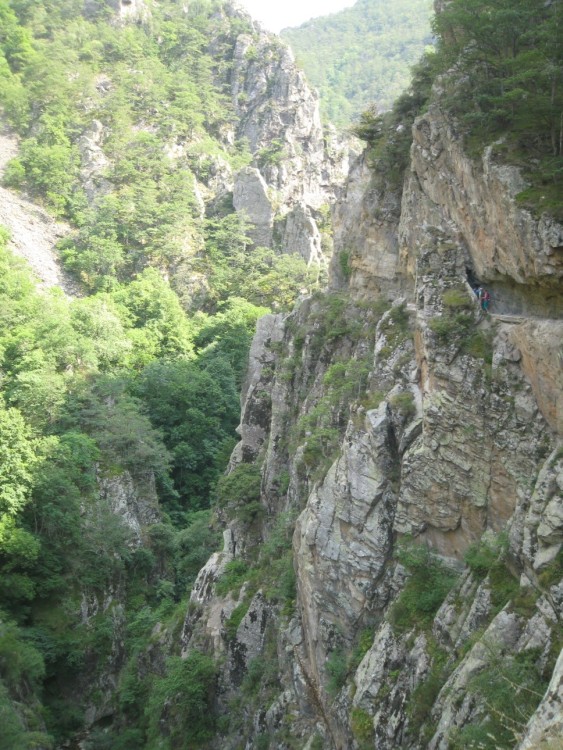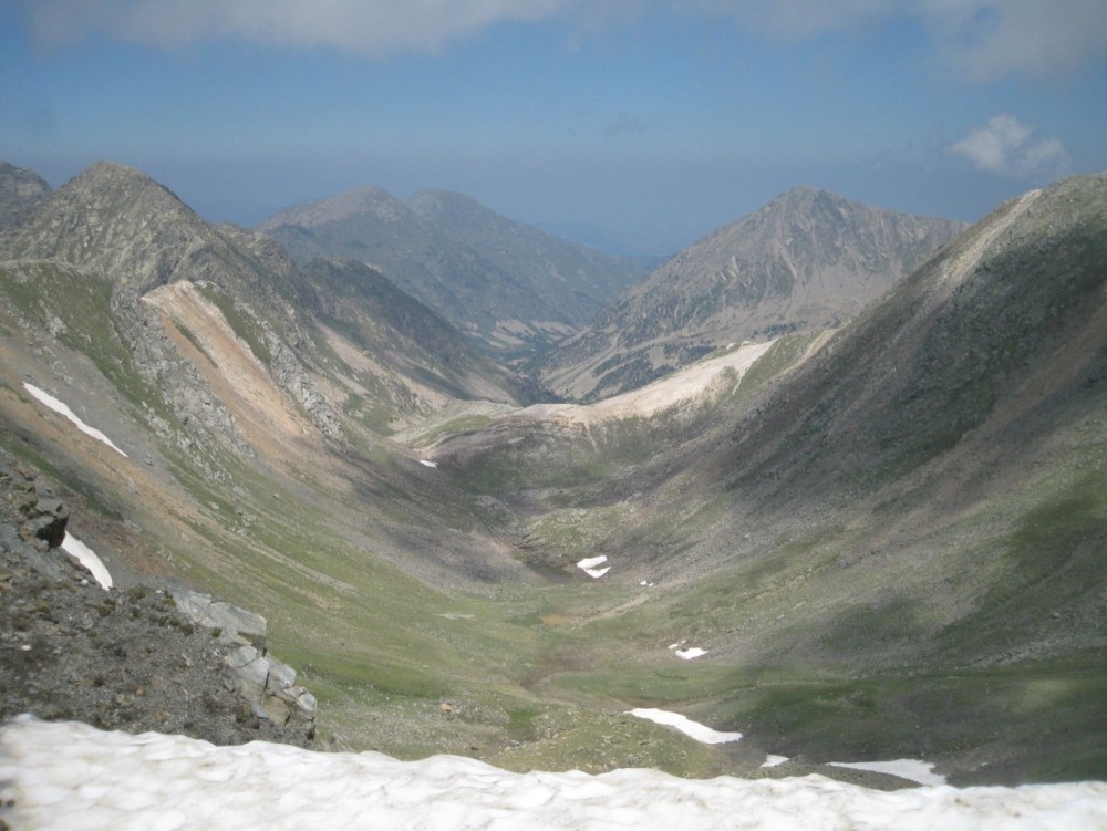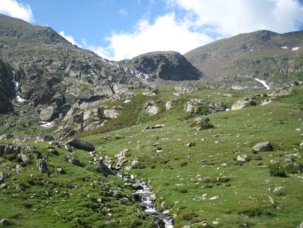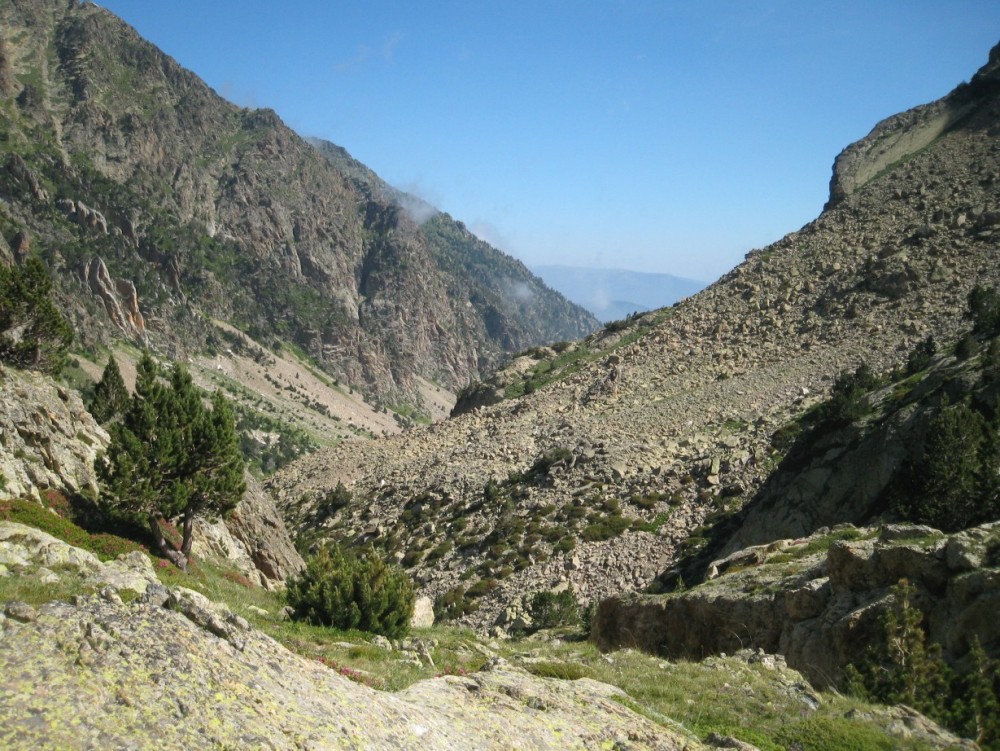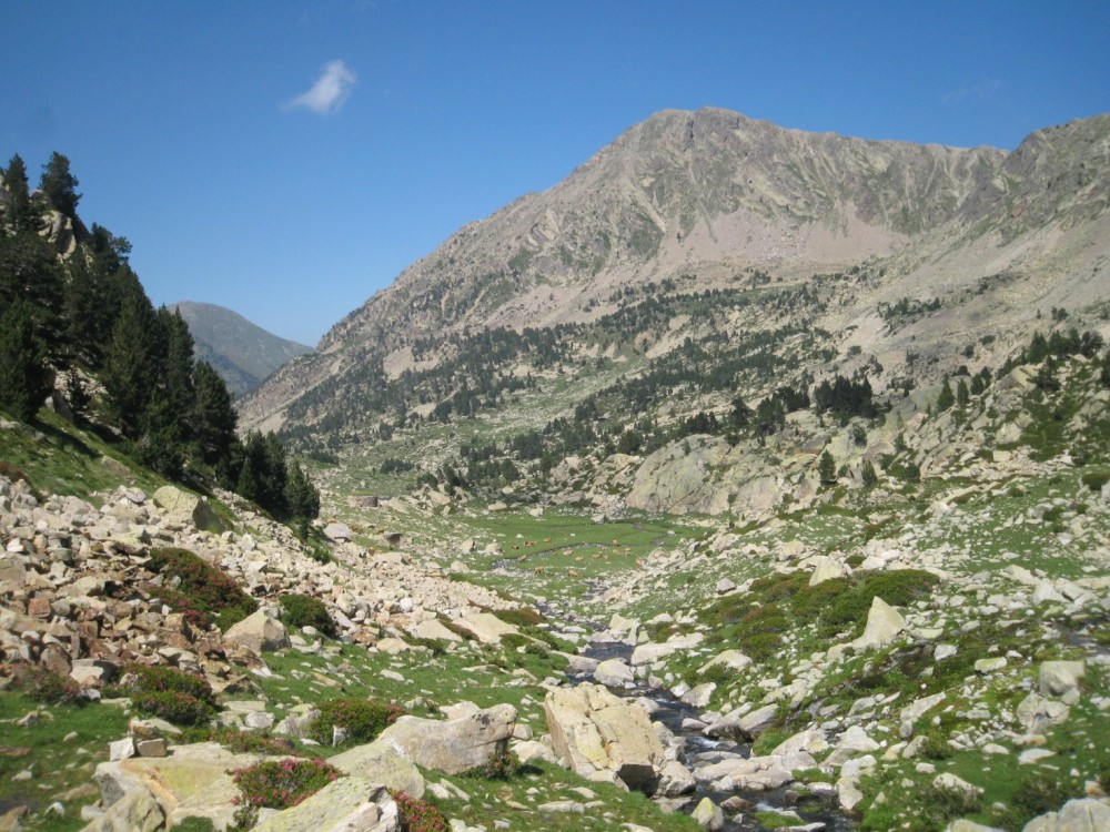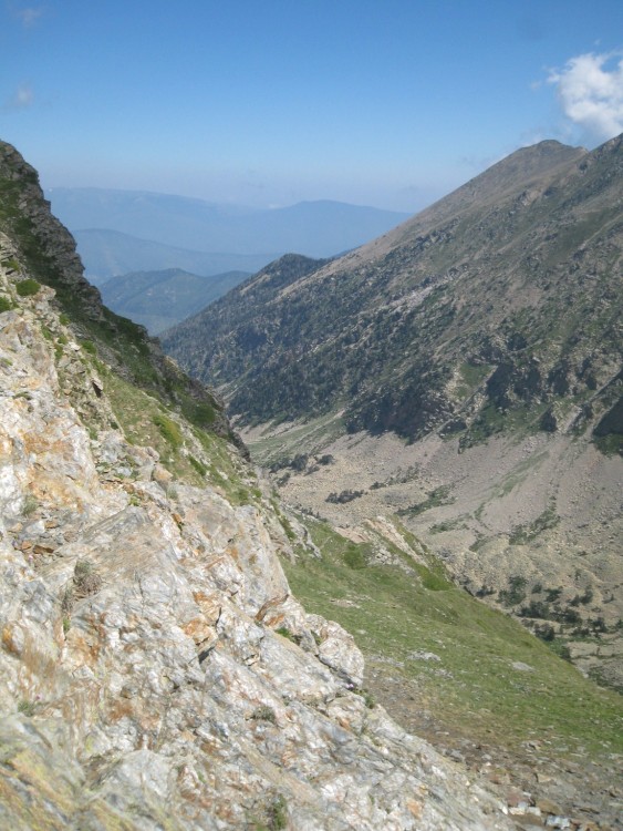 Je redescends rarement à Perpignan, mais au cas où, ce sera avec plaisir. Je continue avec une rando dans les Pyrénées-Orientales, l'ordre chronologique des photos n'est pas respecté... Gorges et vallée de la Carança (juillet 2008) Un premier contact. Entrée dans les gorges en partant de Thuès Puis une passerelle Suivie d'un sentier étroit Heu... assez étroit (haut-gauche) Mais bon, on s'y fait Un court tunnel, pour le fun ! au final, tout le monde s'en est bien sorti... Une vue plus dégagée qui fait du bien Un orri(y) Quelques petites fleurettes que je ne saurais nommer Des rhododendrons et quelques pins... Espérons que le brouillard ne va pas s'installer Confort sommaire... pour les amateurs. Une partie est occupée par un berger durant la période estivale Un premier petit lac Suivi d'un second (non, ce n'est pas le même) Ambiance plus minérale, la végétation se fait rare Le col des neuf croix (2800m) Quelques isards (certains les appellent "les chamois des Pyrénées") Que de cailloux ! Et pas un seul grenat (enfin, je n'en suis pas sûr !) Le pic de l'enfer (3081m) Un bivouac bien mérité et une nuit de repos Bon, la neige, c'est pas trop mon truc... mais vu de loin, elle peut devenir un élément du décor Maman isard et sa fille (ou son fils)... Des cailloux, encore des cailloux... et toujours des cailloux. C'est à se demander ce que nous allons manger ce soir Brève conversation avec une vache en estive... La buvette est gratuite, mais pas plus de deux à la fois ! Estany de la Carança Qu'est-ce qu'ils sont beaux ces lacs ! Je m'y perds dans tous ces lacs et j'ai du mal à me souvenir de leurs noms... L'âne n'est pas celui de Stevenson et nous ne sommes pas dans les Cévennes. Simplement un randonneur courageux traversant les Pyrénées ! Refuge en vue Refuge du Ras de la Carança ... et un autre refuge, mais pour les moutons Au fond de la vallée, légèrement sur la droite, les ponts/viaducs sur lesquels circule le train jaune cher aux Catalans Fin de la rando... ... et toujours cette satanée dernière photo qui n'a rien à faire à cette place !
