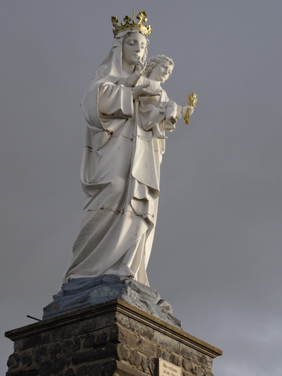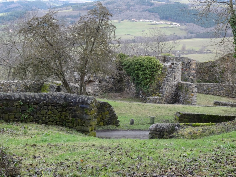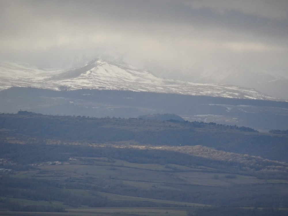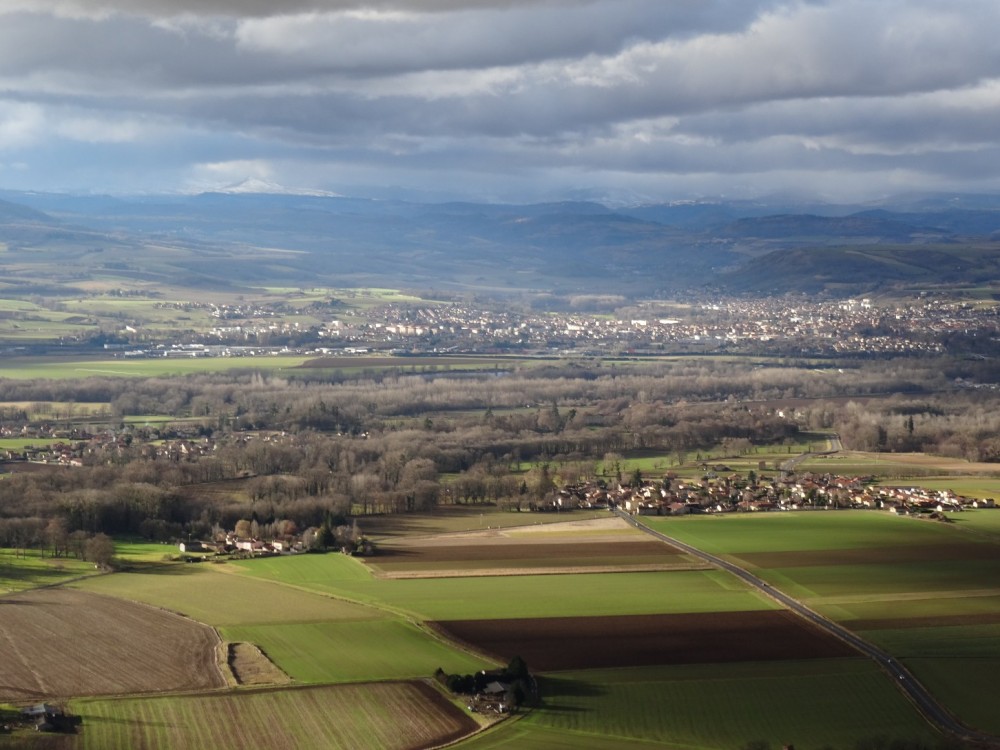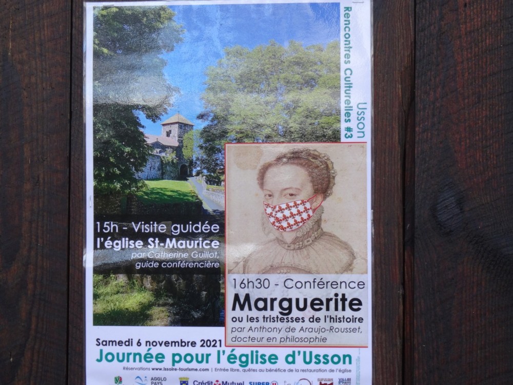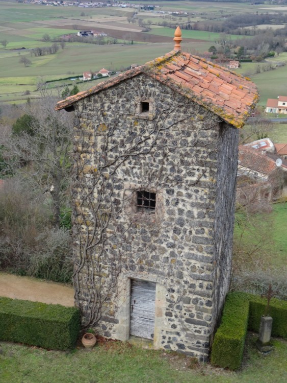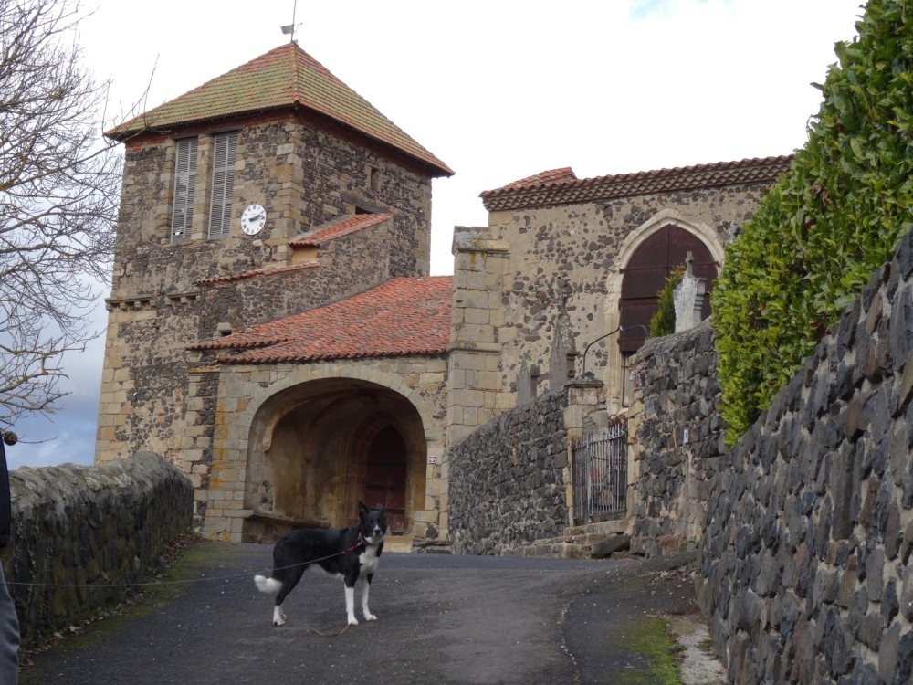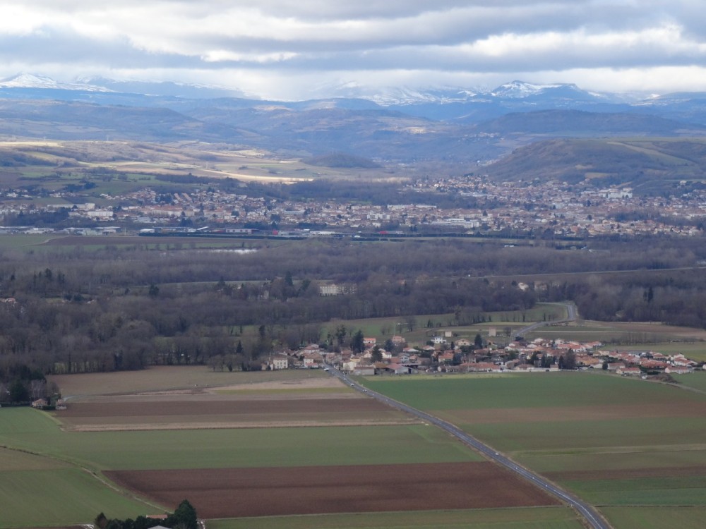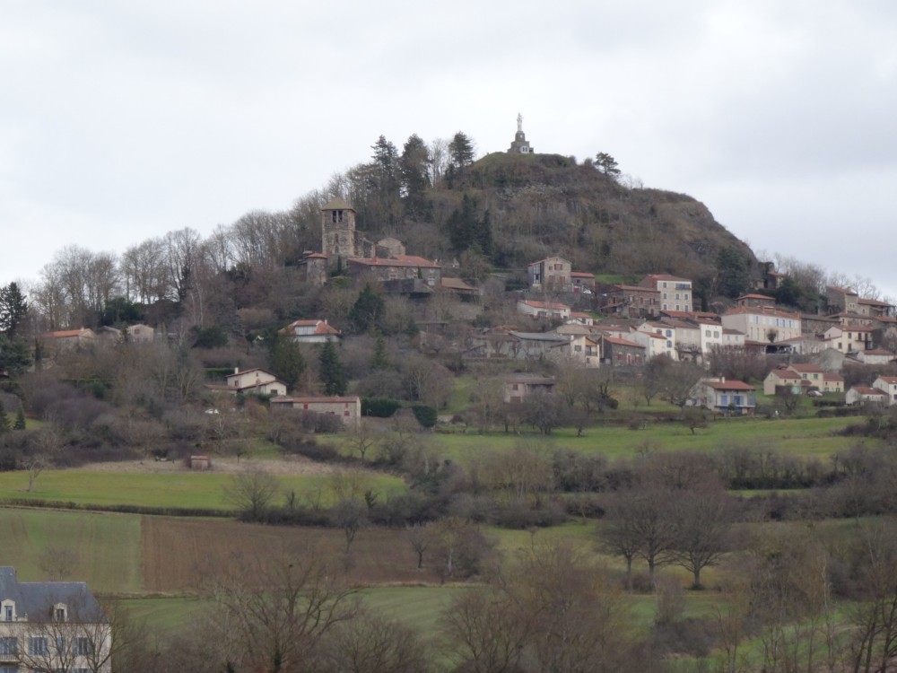 Promenade autour du village d’Usson (Puy-de-Dôme) Le 26/12/2021 Construit sur le flan d’un ancien volcan, ce village qui domine le val d’allier et la plaine d’Issoire est classé parmi les plus beaux de France. Jadis, une forteresse réputée imprenable trônait au sommet de la butte volcanique, elle fut détruite sur les ordres de Richelieu au XVIIème siècle. Marguerite de Valois (fille de Henri II et première épouse d’Henri IV) y séjourna de 1586 à 1605. Usson, vu de la D709 Départ du circuit pédagogique qui retrace le passé mouvementé des lieux Visite aux orgues basaltiques situées au Sud du village Quelques colonnes fragmentées stockées au bas de la carrière Nul besoin de parcourir de longues distances, le matériau de construction était à portée de main. Le passé historique des lieux est omniprésent dans la bourgade L’église Saint Maurice, construite aux XIème et XIIeme siècle. Marguerite de Valois (la Reine Margot) venait probablement s’y recueillir Une jolie porte, située sur un côté de l’église L'entrée principale de l'église Une amorce de restauration / reconstruction de l’ancienne forteresse. La Porte de France Sur ordre de Richelieu, la plupart des forteresses non situées sur les frontières furent déconstruites ou rasées. Parmi les raisons mises en avant, la lutte contre la désobéissance de la noblesse L’entrée d’un souterrain, ou peut-être celle d’une cave Une rose trémière qui semble bien résister aux premiers assauts de l’hiver Vue d'une partie du village avec le clocher de l'église en arrière-plan Un antique pigeonnier accolé à une maison d'habitation et à une grange Le maréchal Ferrant a disparu, mais il subsiste l’un de ses outils de travail Dragon ou salamandre volante ? Mais aussi lampadaires du village La salamandre, emblème des Rois de France au XVIème siècle Ci-dessous : Salamandre de François 1er Un pigeonnier bien restauré L'église et l'une des entrées de la citadelle Le covid sévissait déjà Quelques maisons du village… Au dessus de nos têtes, deux milans royaux venus saluer la mémoire de Margot Cette vierge dédiée aux aviateurs fut construite au sommet de la butte puis inaugurée en 1893, elle mesure 7 mètres de hauteur. De là-haut, un panorama à 360° sur la Chaîne des Puys, le Massif du Sancy, le Cézallier, les Monts du Cantal et du Livradois-Forez. Après la ville d’Issoire, à l'arrière et au pied du plateau situé sur la droite, Perrier et ses habitations troglodytiques Quelques hameaux environnants et "vus d'en haut" Le massif des monts Dore enneigé, et vu du même endroit Et pour terminer la promenade, une rencontre inattendue à la sortie du village Une photo postée par erreur (doublon) et que je n'arrive pas à supprimer