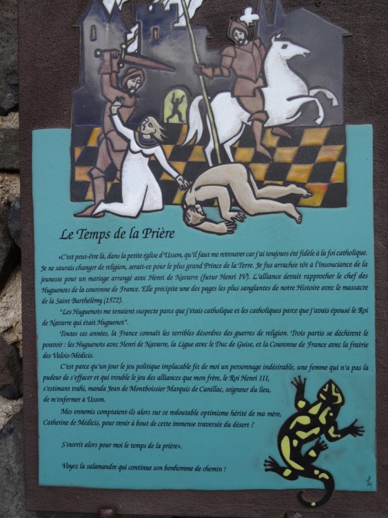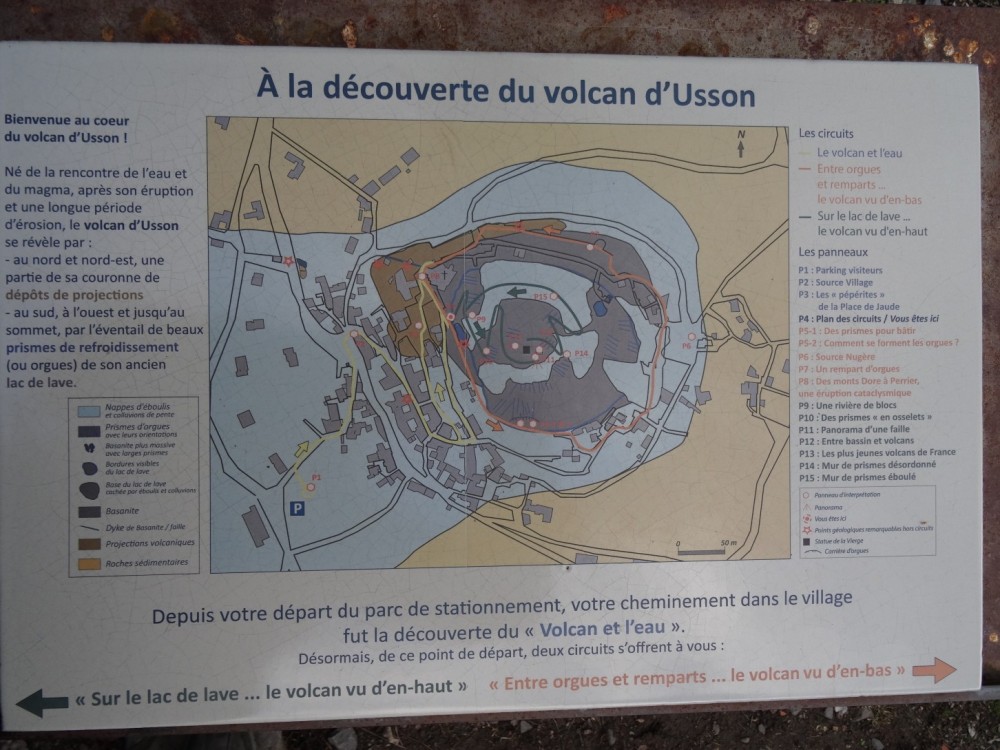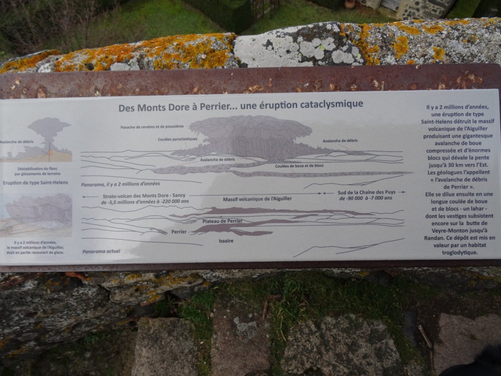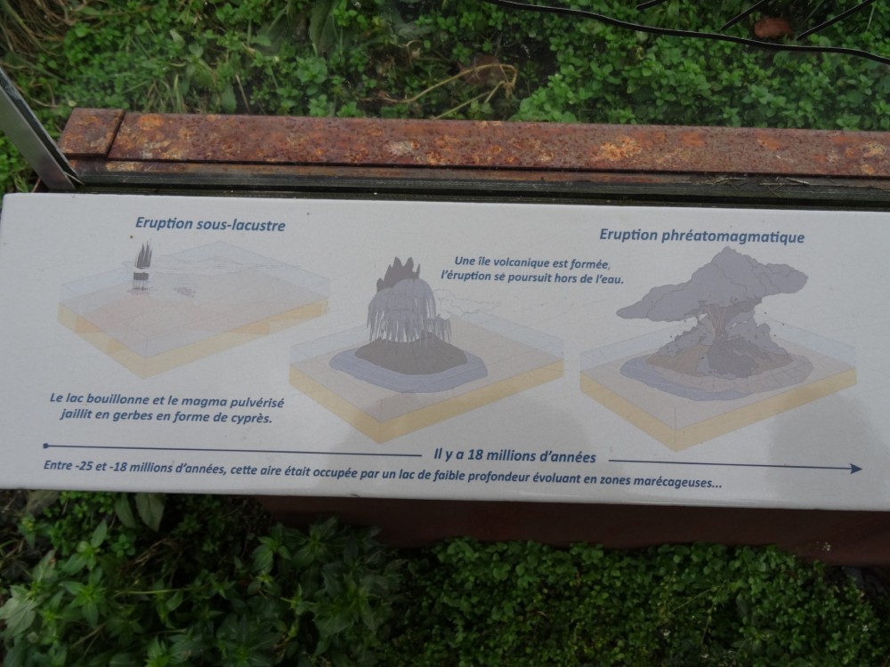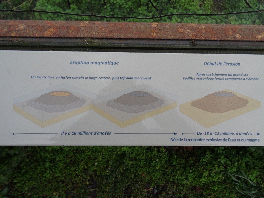 Merci à vous. Les plaques émaillées et les tables d'orientation (ces dernières non photographiées) sont l’œuvre de Marie et François Lienhard, céramistes à Usson. Ce sont surtout eux qu'on devrait remercier, grâce à leur travail, la visite de ces lieux prend une toute autre dimension que celle d'une simple balade, que l'on s'intéresse à la géologie, à l'histoire... ou aux deux