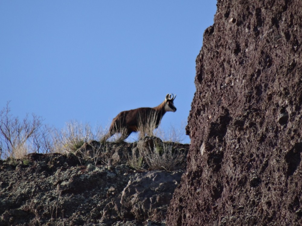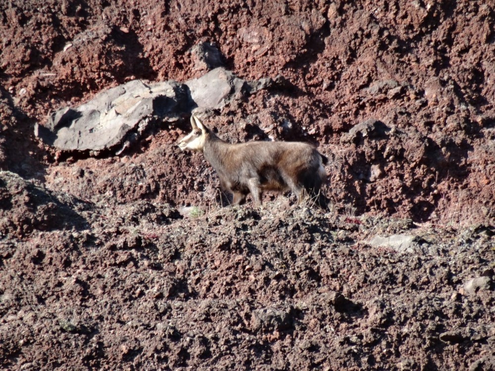 Vision furtive dans un bois à Olloix (Puy-de-Dôme), pas très loin de l'endroit où l'on trouvait jadis de très belles barytines miel. Animal probablement égaré car loin de toute habitation et dans un lieu non clos... Bref, pas vraiment sauvage mais impossible de s'en approcher. Finalement, nous avons pris congé (en fait, c'est plutôt lui qui a pris la ""poudre d'escampette" !) -