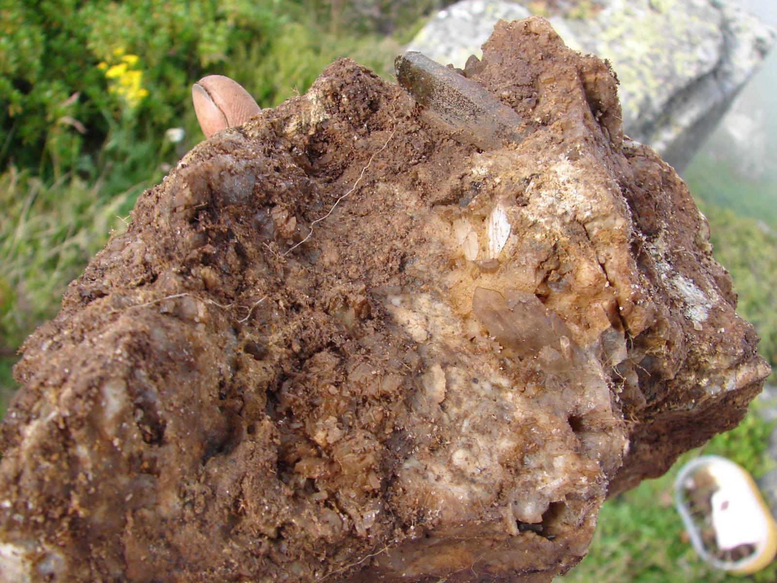 Hier, pour profiter du beau temps, avec mon amie nous avons fait une randonnée en raquettes dans la neige au dessus de Luzenac. Lors de la montée en voiture,à la faveur d'une pose pipi, mon regard à été attiré par quelque chose de brillant dans un gros bloc posé en bord de route (après le pont pour ceux qui conaissent le secteur) heureusement que j'avais ma massette et mon burin dans la voiture ( je suis maçon) j'ai pu donc extraire ces magnifiques pyites sans casse !