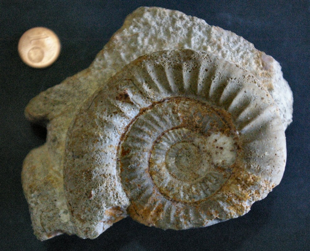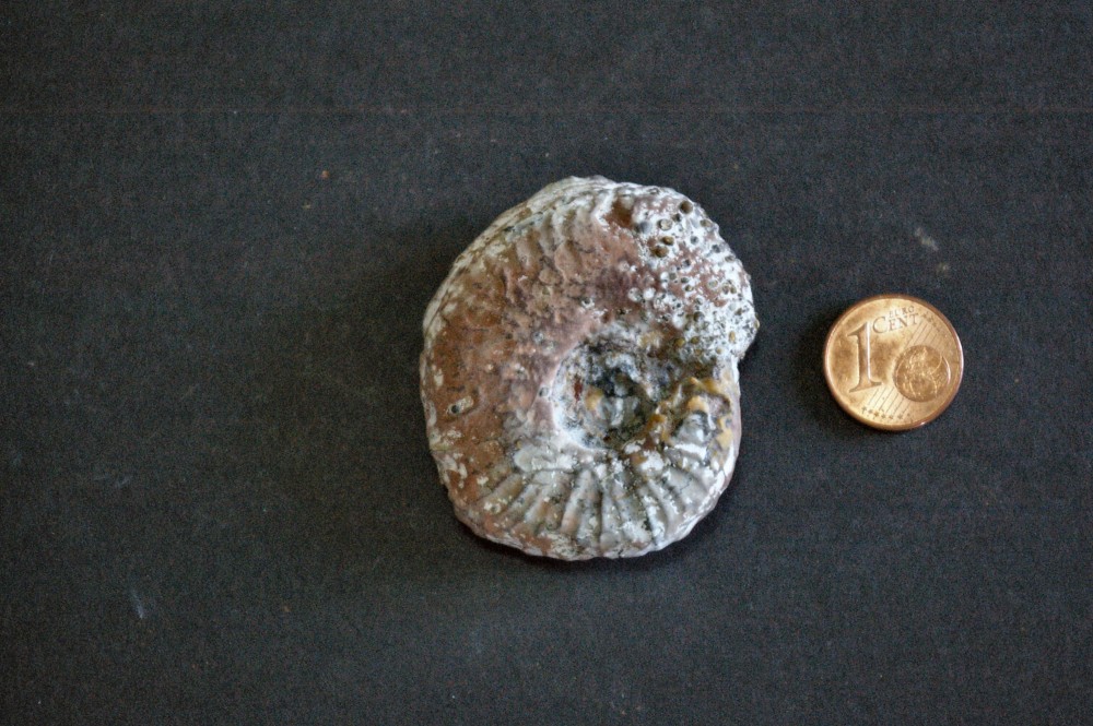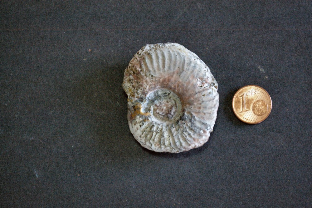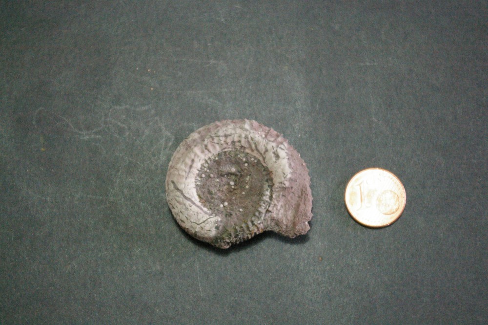 Bonjour, Je m’adresse aux spécialistes des ammonites pour identification de quelques unes que j’ai récolté en 2011 dans la carrière de Lafarge à Belmont-d’Alzerge dans le département du Rhône. La plus part proviennent du Jurassique inf. (Toarcien) J’en ai identifié une partie (Catacoeloceras, Grammoceras, Hammatoceras, Hammatoceras, Hildoceras, etc.) mais pour celles qui restent je sèche ou j’ai des doutes. Je mets les photos en ligne. L’échelle est une pièce de 1 centime d’Euro. Je vous remercie d’avance pour vos réponses car cela me sera bien utile pour finir mon classement. Cordialement PM -