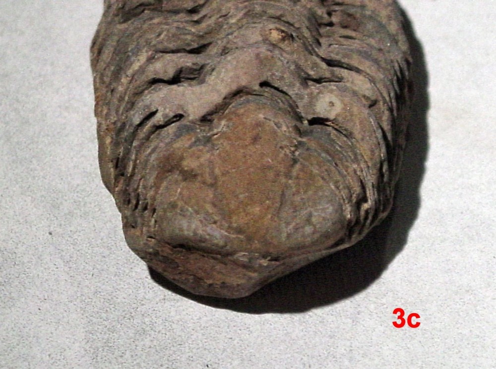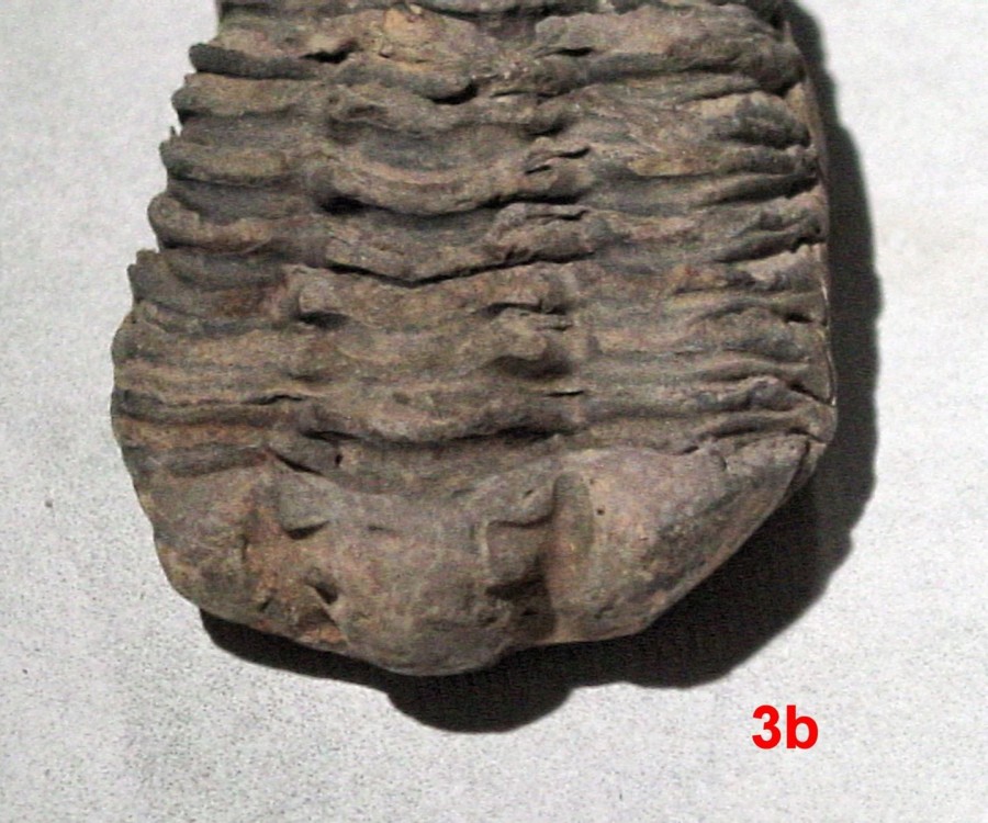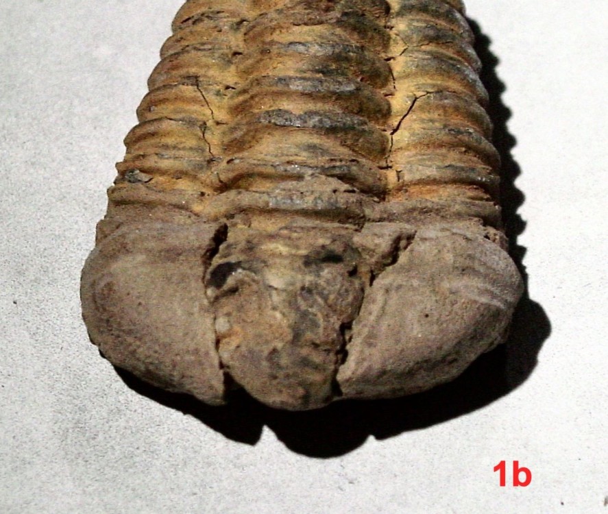 Bonjour, Je voudrai déterminer des Trilobites en provenance du Maroc de la région d’Alnif. C’est un ami qui m’a donné cela il y a quelques années lorsqu’il y avait fait un séjour. Je ne peux malheureusement lui demander plus de détails car il est décédé en 2012 au Pérou lors de ses recherches en tant qu’entomologiste. J’ai numéroté les photos jointes : 1 à 3 : ensemble des trilobites. 1a à 3a : vue de coté 1b à 3b : vue coté tête 1c à 3c : vue coté queue Pour ma part, je pense que les trilobites 1 & 2 pourraient être des Flexicalymene ouzregui ? Pour celle marquée 3, déjà la tête me semble en partie absente et ce pourrait être une Colpocoryphe grandis ? Si quelqu’un à de meilleures idées ou de meilleures explications je suis preneur. Merci d’avance de vos réponses. P. Maurette NE PAS RÉPONDRE ICI CE MESSAGE EST INCOMPLET VOIR LE SUIVANT MERCI -