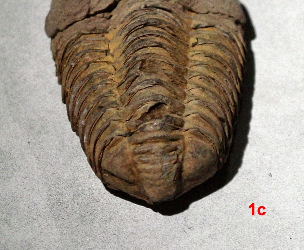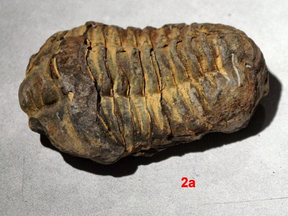 Bonjour, Je voudrai déterminer des Trilobites en provenance du Maroc de la région d’Alnif. C’est un ami qui m’a donné cela il y a quelques années lorsqu’il y avait fait un séjour. Je ne peux malheureusement lui demander plus de détails car il est décédé en 2012 au Pérou lors de ses recherches en tant qu’entomologiste. J’ai numéroté les photos jointes : 1 à 3 : ensemble des trilobites. 1a à 3a : vue de coté 1b à 3b : vue coté tête 1c à 3c : vue coté queue Pour ma part, je pense que les trilobites 1 & 2 pourraient être des Flexicalymene ouzregui ? Pour celle marquée 3, déjà la tête me semble en partie absente et ce pourrait être une Colpocoryphe grandis ? Si quelqu’un à de meilleures idées ou de meilleures explications je suis preneur. Merci d’avance de vos réponses. Cordialement P. Maurette -