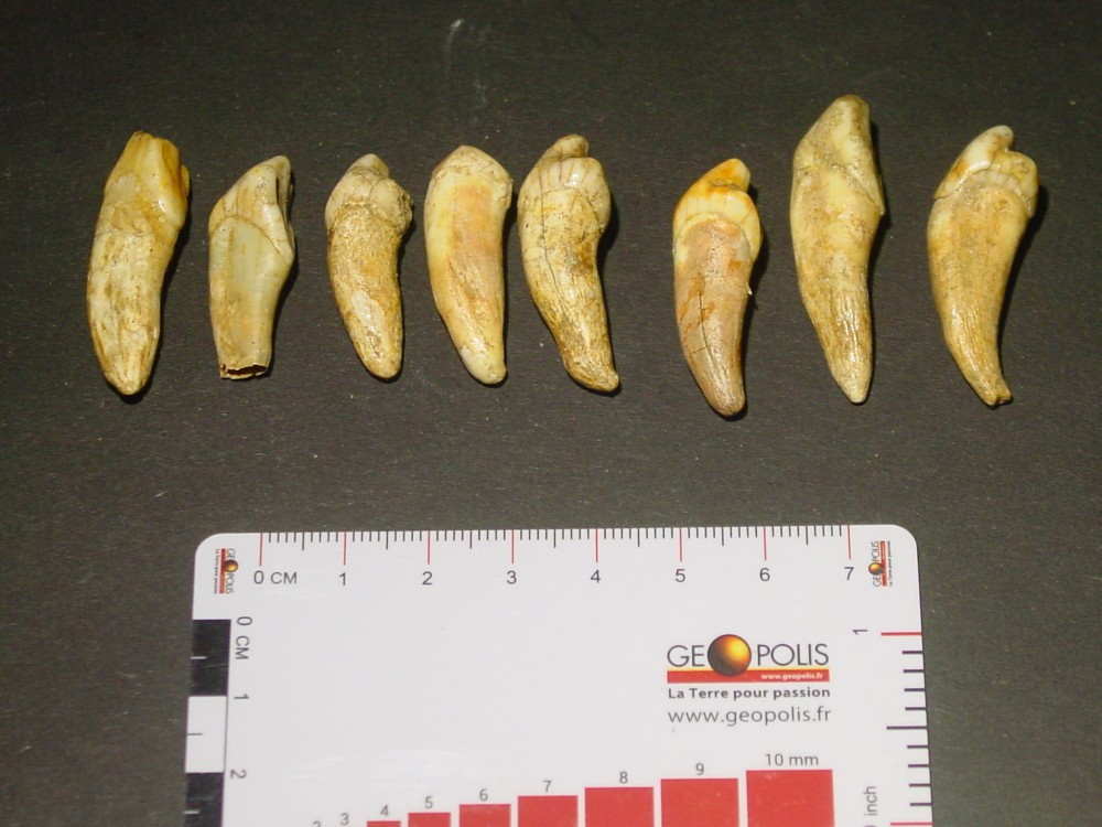 Bonsoir et merci d'avoir répondu à ma question. Ci-joint d'autres photos de dents, la plus part je pense d'ours des cavernes et 2 dents d'herbivores ? Cordialement PM -