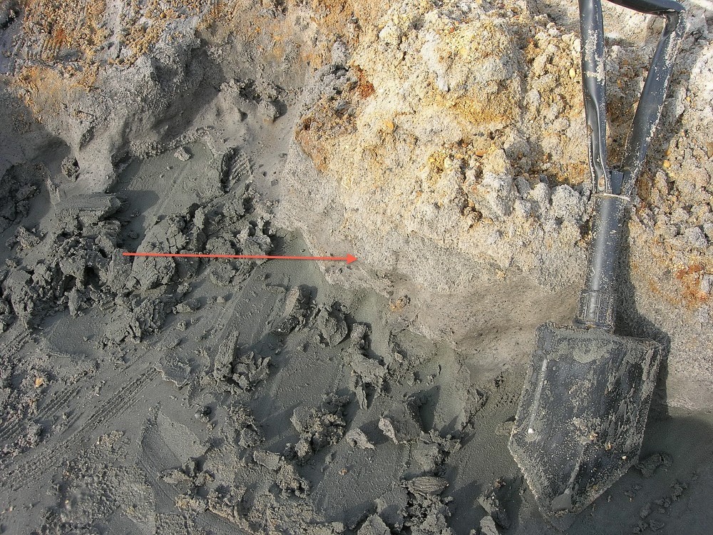 Si l'on prend le pendage et la position relative des sous-sols grésifiers, On a le niveau de la nappe 8M au dessus de ce contact vert/gris. Dans ces même blocs de grès, nous avons systèmes racinaire et falun carbonaté. fossiles que l'on retrouve pseudomorphosé en pyrite dans les sables! Par addition j'obtiens un tranche d'eau de 16m au minimum! J'ai 3 dents de requin par M3 dans les sable Vert, 40 dans les sable gris. volume probable concentré par gravité 13,33,,,M3 Ne pas omettre les modification au sein des sédiments dû au rabattement de la nappe de l'anthropocène! Je ne suis pas têtu mais très pugnace et désespérément intègre! -