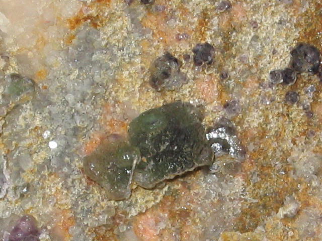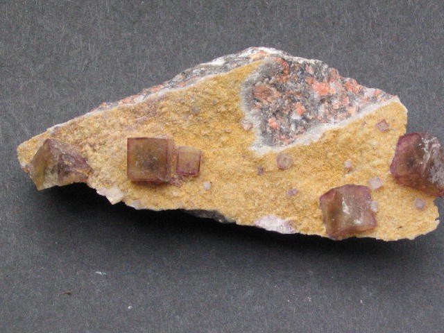 Une illustration de la couleur "onthozonite" ... j'ai eu l'occasion de recolter de la fluorine dans une carrière de feldspath (montebras dans la creuse) ... dans une partie de la carrière, j'avais observé la présence d'autunite et la fluorine dans cette zone montrait une couleur très foncée, alors que dans le reste de la carrière il n'y avait pas d'autunite (du moins pas visible) et les fluos étaient plutot jaune à violet clair ... EDIT : présence de feldspath potassiques donc source de rayonnement !!!