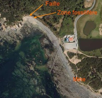 La zone de faille se trouve du coté nord de la baie (cachée dans la végétation) :