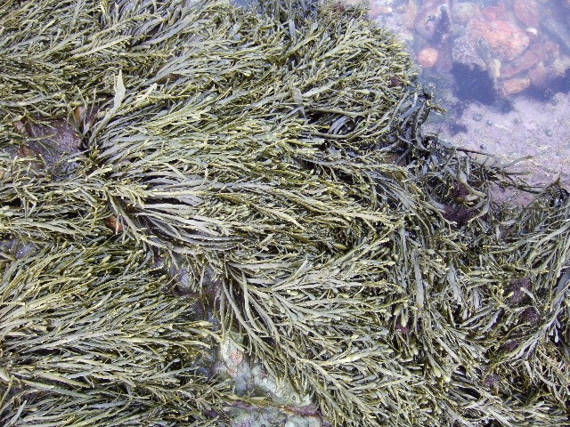 Ascophyllum nodosum, abondant sur les rochers à marée basse :