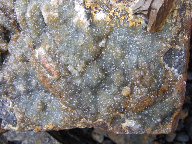 Mais vu la dureté du support,impossible ou presque de recueillir des échantillons ! Les têtes de quartz se détachent les unes des autres !